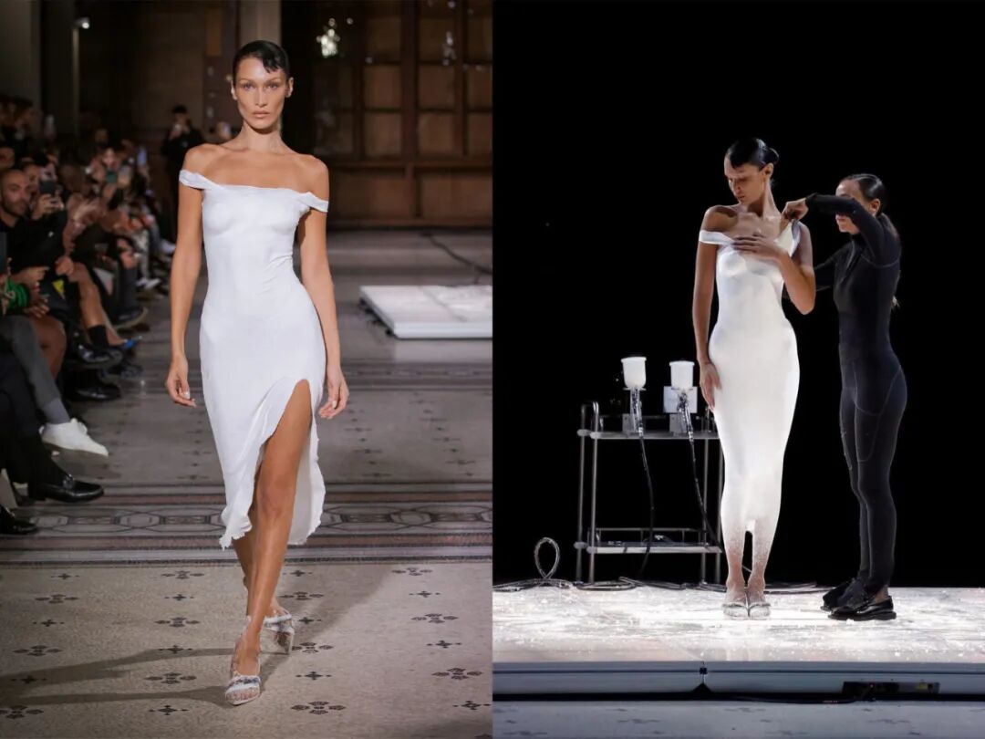 Coperni秀场上Bella Hadid的压轴look让我相信了这是2022的时尚,看到拿起喷枪的操作,任何人都会想起Alexander McQueen 1999春夏那一件写入历史的机器人喷墨裙。