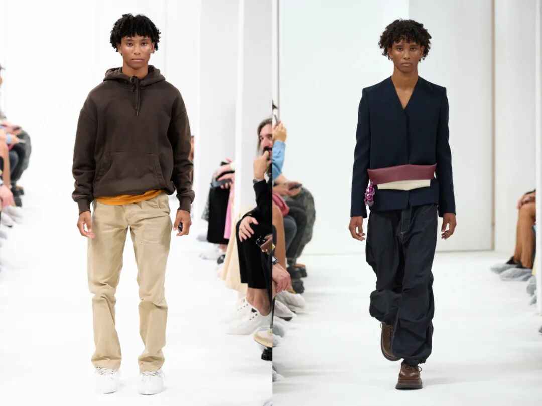 男装的帽子则是运动机能感十足,实穿好卖。对于一个新上岗的创意总监来说,是稳扎稳打和保险的呈现,对于一个LVMH Prize半决赛的选手,我们显然会期待更多。