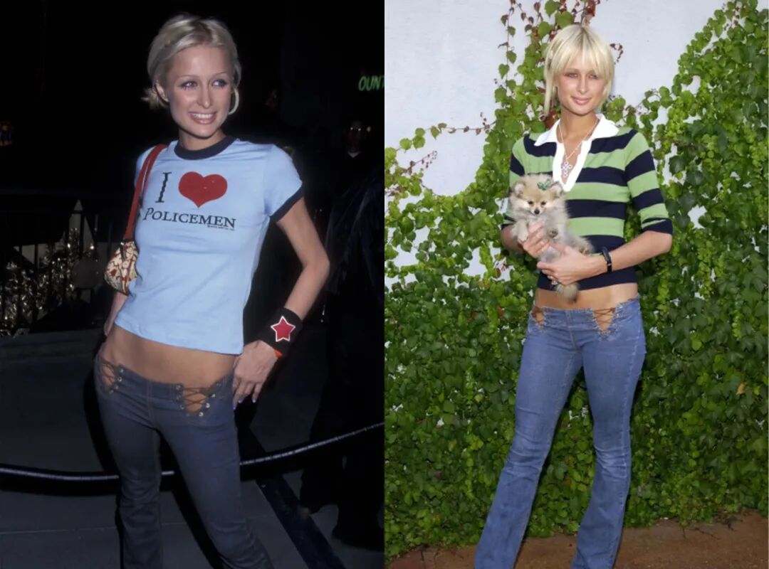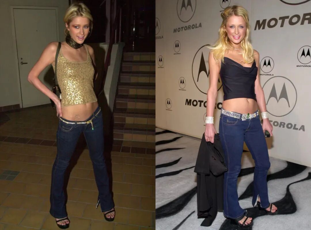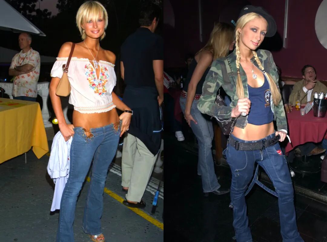 Y2K的代名词Paris Hilton大小姐也几乎只穿低腰裤、迷你裙。