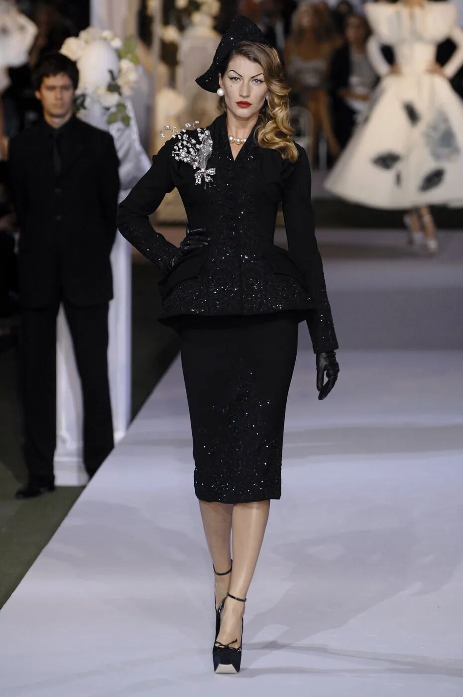 07的年时候,吉娘娘已经几乎不怎么走秀了,但为了John Galliano和Dior的60周年,她还是选择了出席。John Galliano时期的Dior除了美,更有太空漫游般的想象力与戏剧张力。这一季Galliano重新致敬经典与历史,被再创造的“New Look”、铃兰的胸花装饰,加上戏剧式的高挑细眉,Gisele演绎贵妇总是信手拈来。