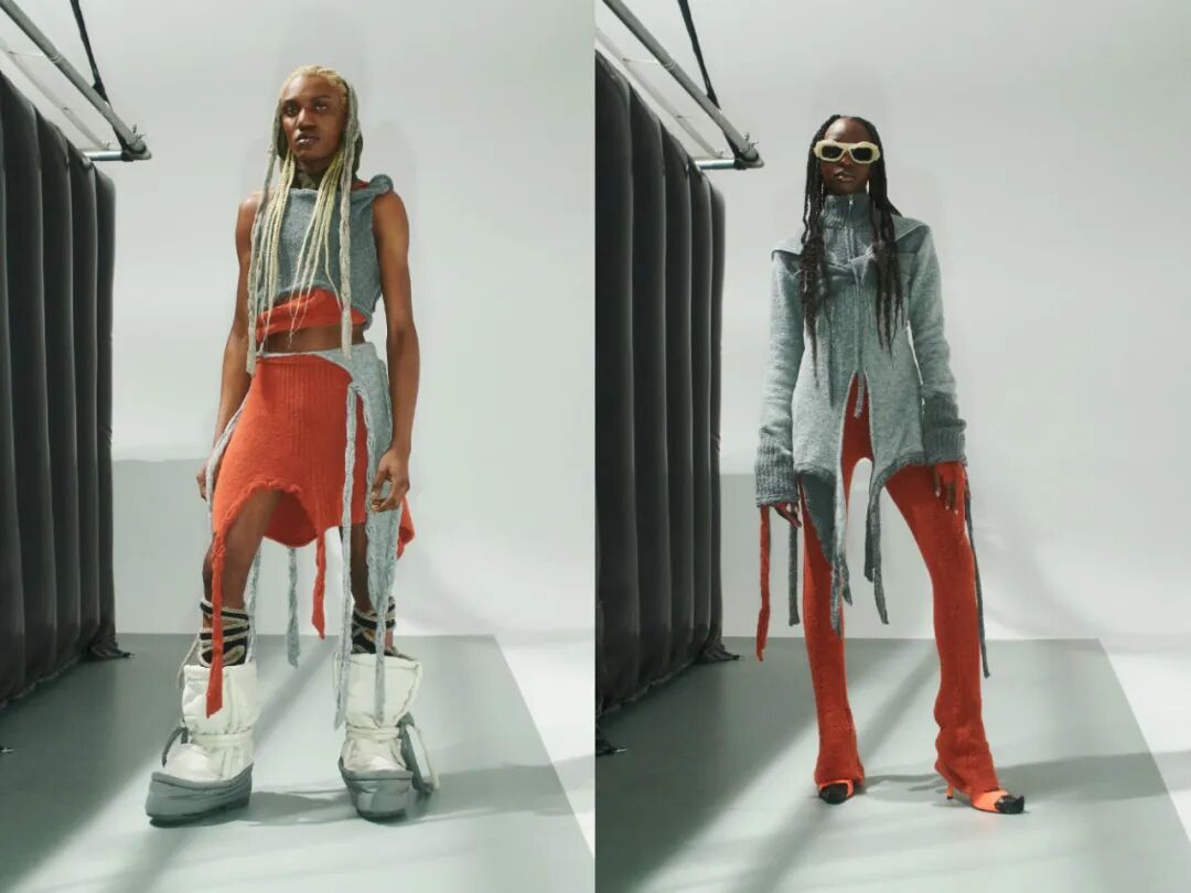 参加颁奖礼一身破败下摆的高领裙装配小腿靴,也就是仗着身材够好才敢这样穿。不过,这样的风格似乎正在Ottolinger的秀场上重回大家的视线。