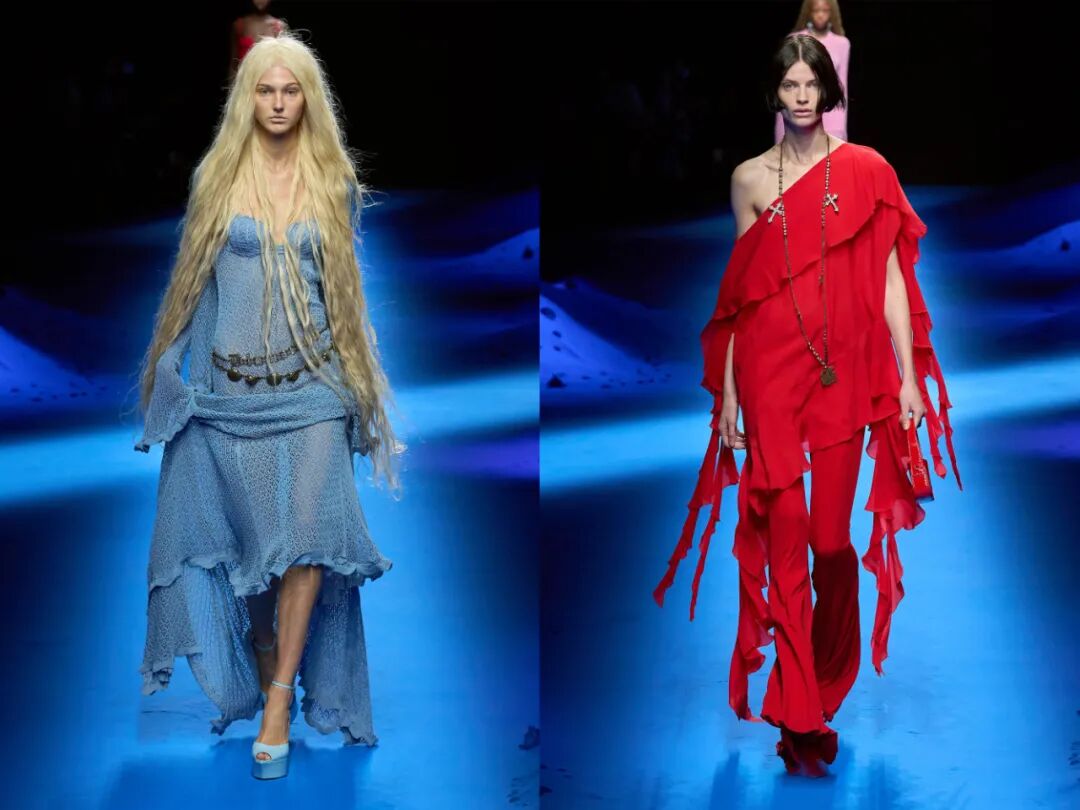 打开最新的Blumarine的2023春夏秀场,我们看见新的设计师们又重新开始回味这风情万种的千禧浪漫。