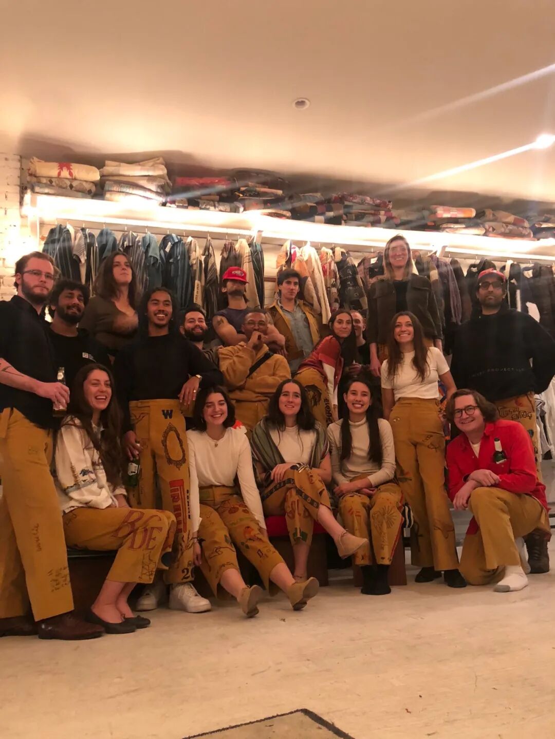 背后的历史其实来自古早的高校Senior Cords文化,普渡大学从1904年开始就有这样的传统,高年级学生们会穿上黄色灯芯绒的单品,用自己的设计巧思加上图案和装饰打造独一无二的灯芯绒单品。