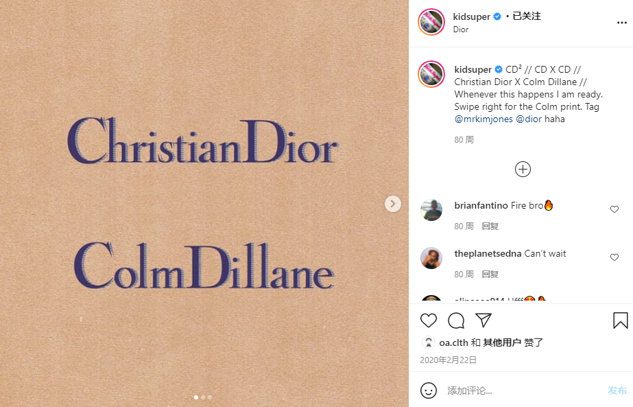 甚至在ins上@了品牌官方和Kim Jones本人,以至于不少粉丝以为这是真的联名。