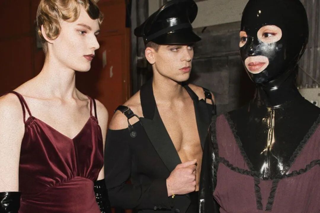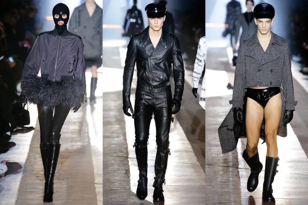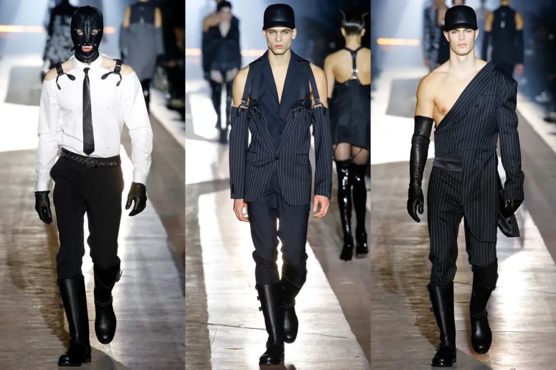 与这之前的所有系列相比,2018秋冬的男装系列显得非常🔞。明显的BDSM元素,像是乳胶、紧身皮衣、绑带、军帽,这一类在fetish界有着标志性的元素轮番上阵。