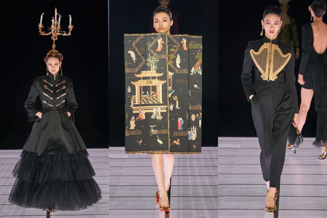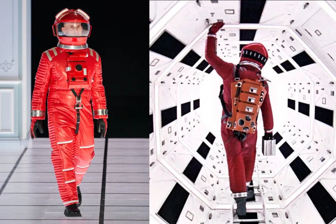 还有22秋冬,以库布里克的电影《太空漫游》为灵感,叉子、餐柜、风琴、鸟笼都成了设计中的一部分。谢幕look也是他在致敬《太空漫游》中的宇航员look。