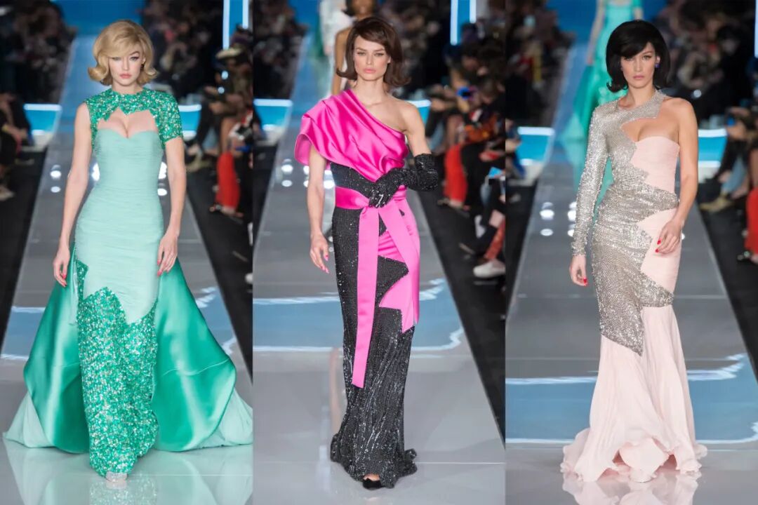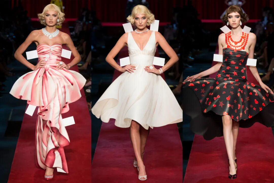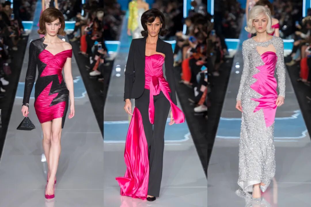 秀场的后半段,似乎走出了杰奎琳的衣橱,性感的亮片低胸礼服、缎面鱼尾裙,标志性的艳粉色似乎更像是玛丽莲·梦露的衣服。