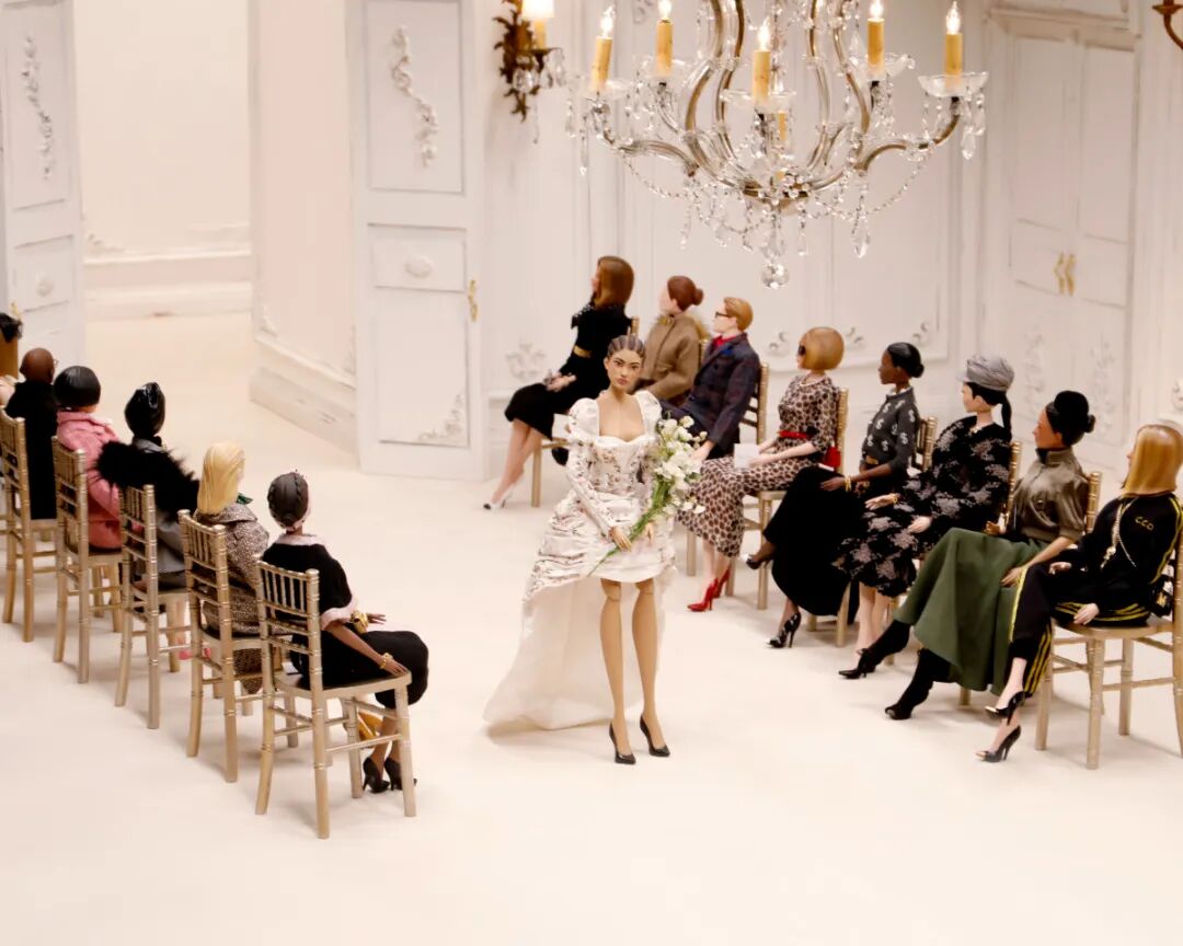 即使身处疫情时期,Moschino照样可以办秀,以提线木偶的形式邀请来了前排嘉宾。