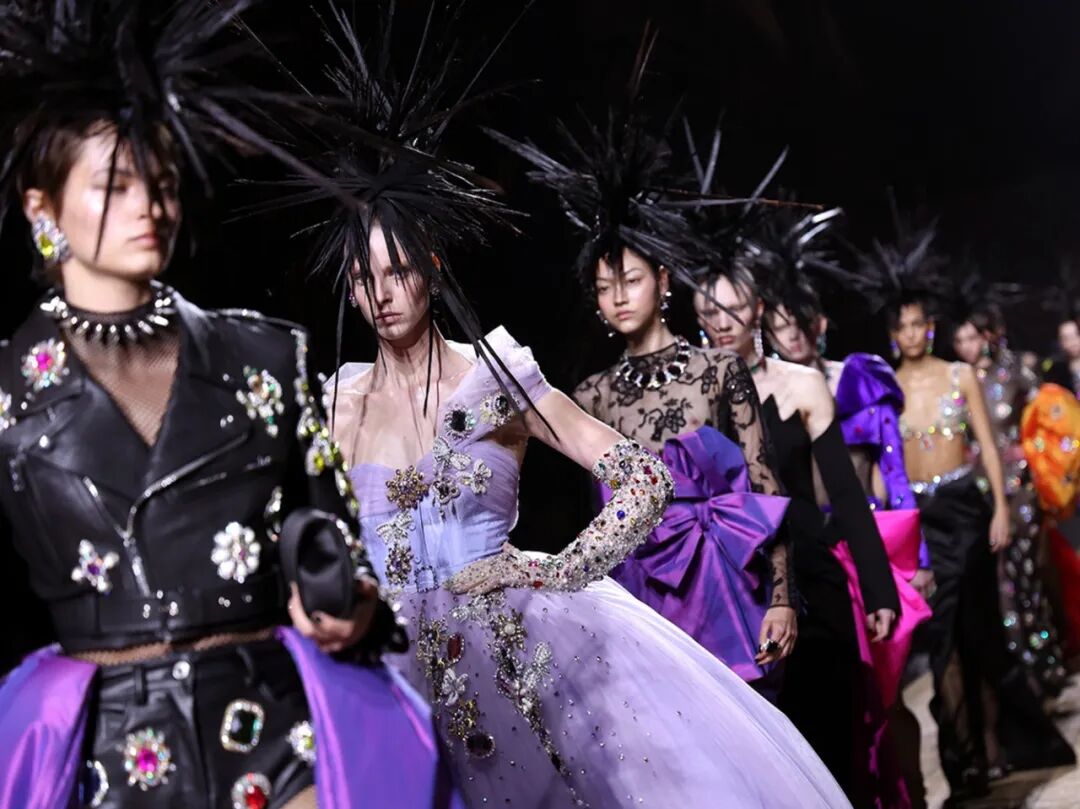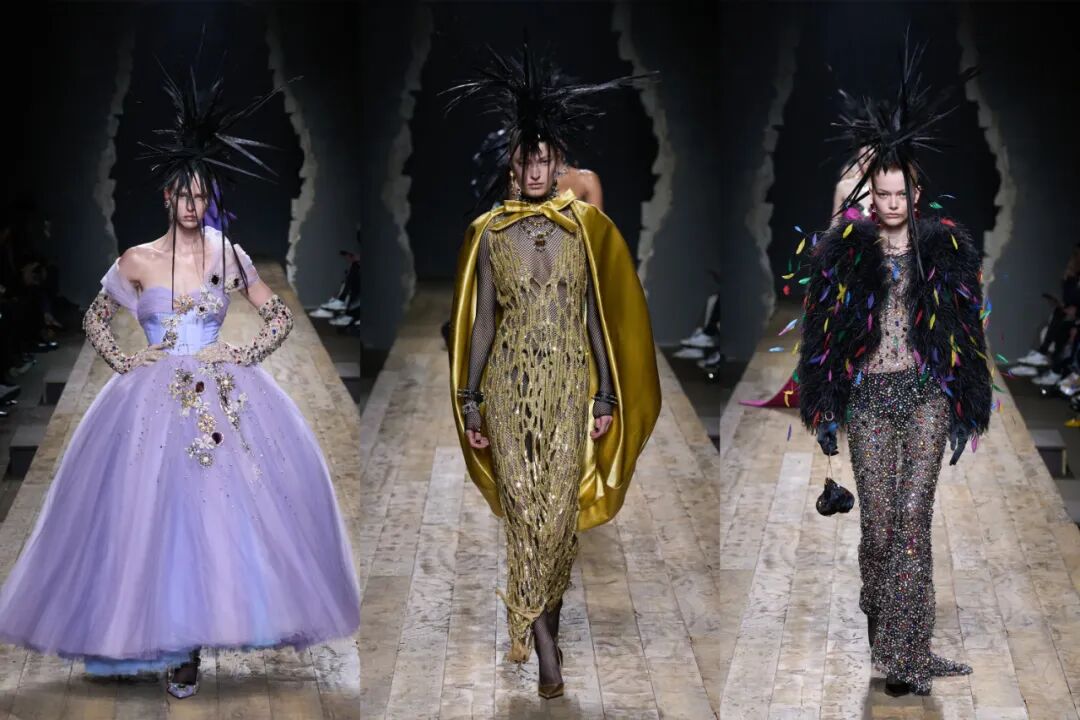 倒是在这样的一场沙龙秀中,Jeremy将自己的童趣收敛了起来,品牌历史中的那些华丽、优雅的大裙子唱起了主角。但依旧能从一些2D印花、皮衣元素中找到Jeremy的影子。