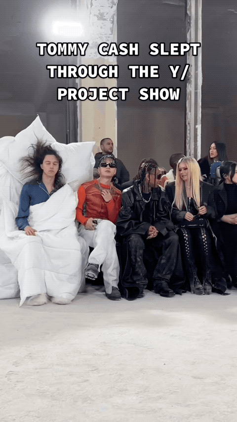 音乐人Tommy Cash是懂怎么看秀才是舒服的。我们看秀都人挤人,绝对谈不上舒服,但在Y/Project的秀场,Tommy Cash以一身“就寝造型”亮相前排,甚至还敷起了面膜,看起来太过惬意了吧?!