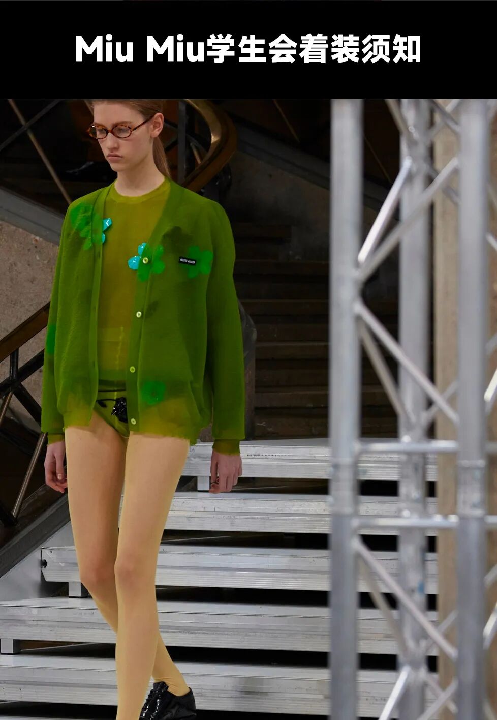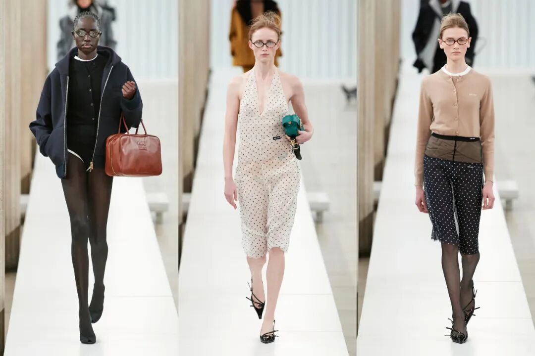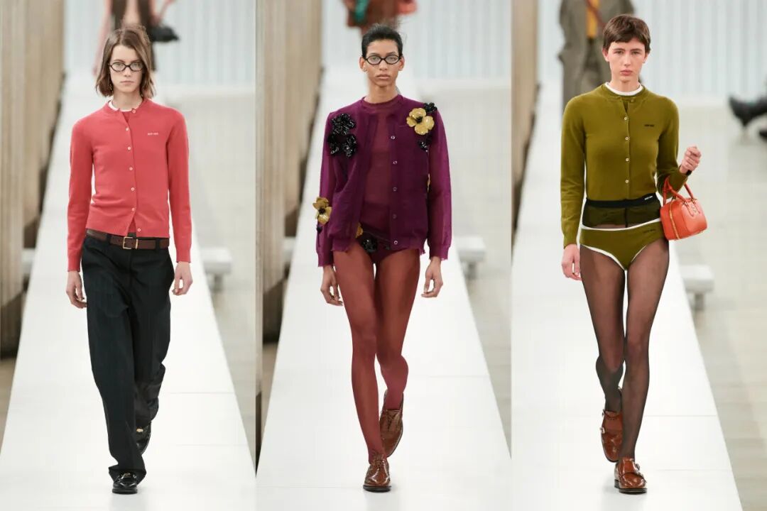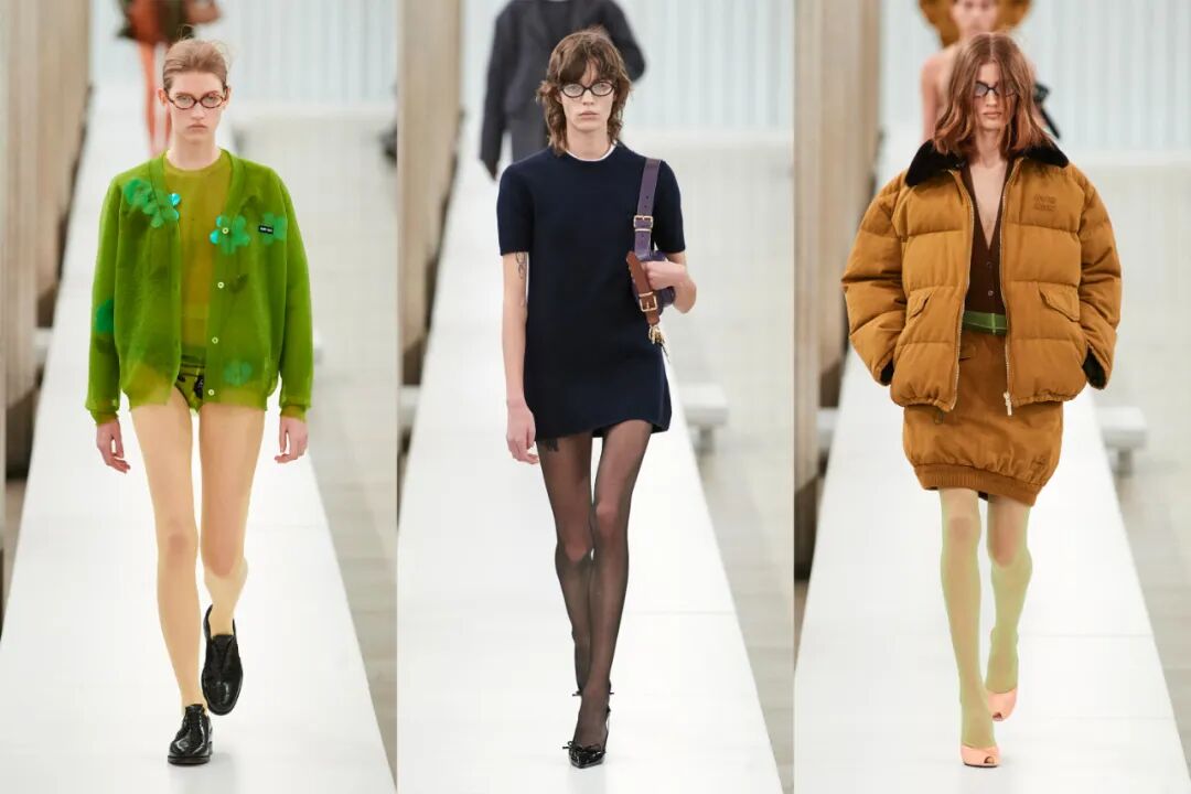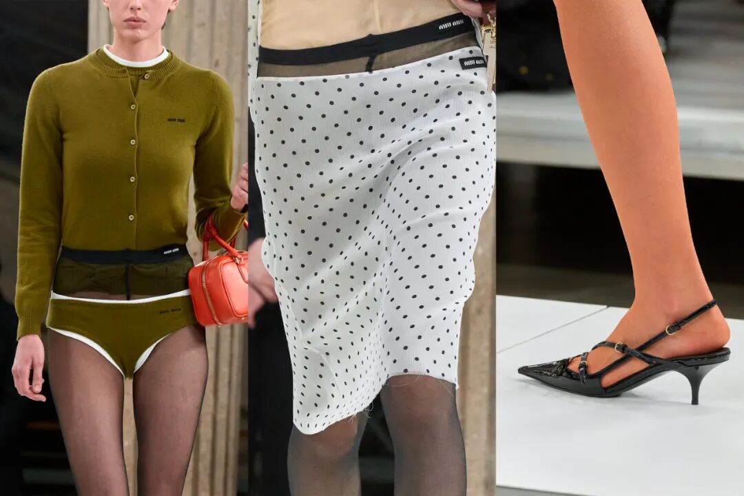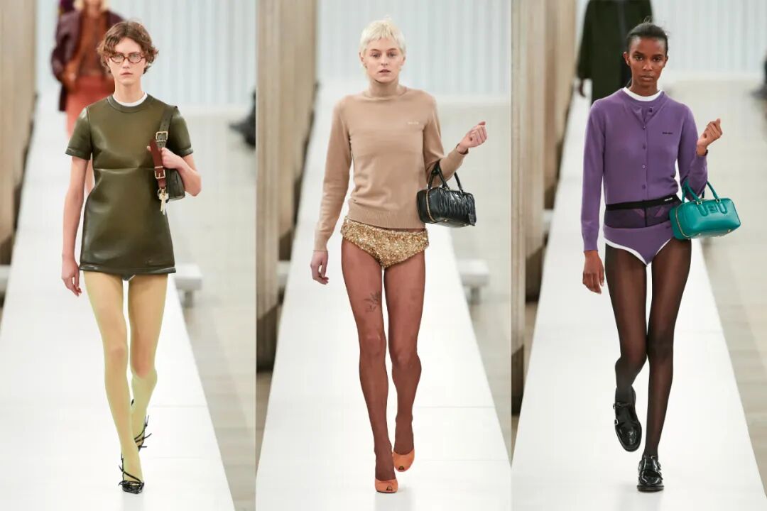 外穿的三角裤、腰间露出的半截丝袜、不同色彩的丝袜都是透露出浓浓miu味的“Ugly Chic”…