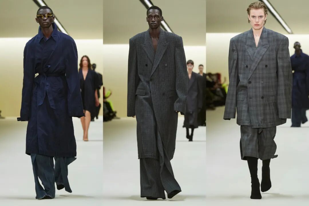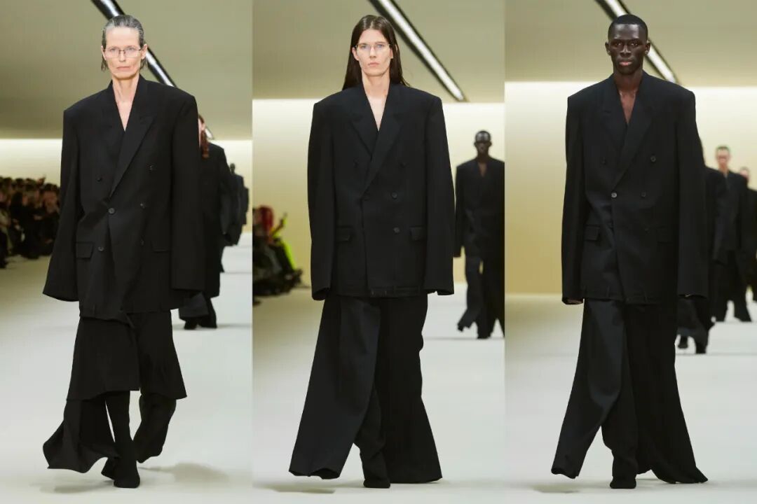当我们以为Demna真的要从良的时候,一系列耸肩的look带着强劲的视觉冲击杀入视野。视觉上打造出的驼背感,让人毛骨悚然,想到钟楼怪人,或者是宰相刘罗锅。