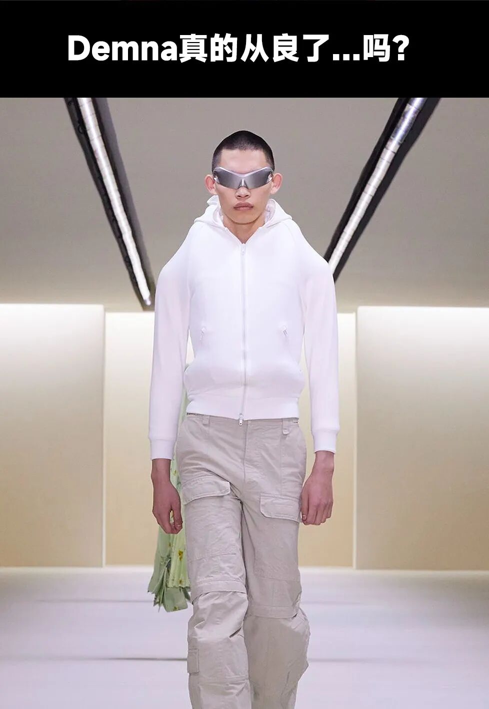 大秀开场,是一系列剪裁和质感绝佳的西装、大衣造型,真的有认真在做衣服了?
