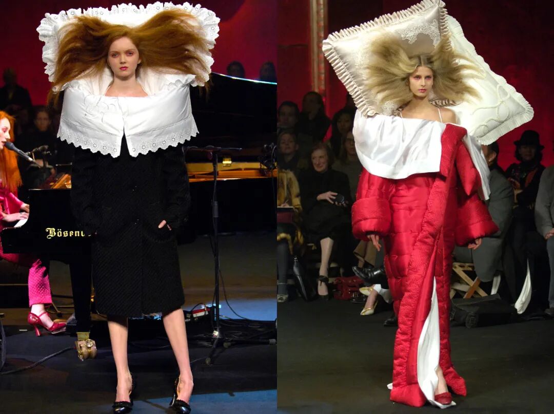 这身look造型灵感毫无疑问来自Viktor&Rolf的经典设计。