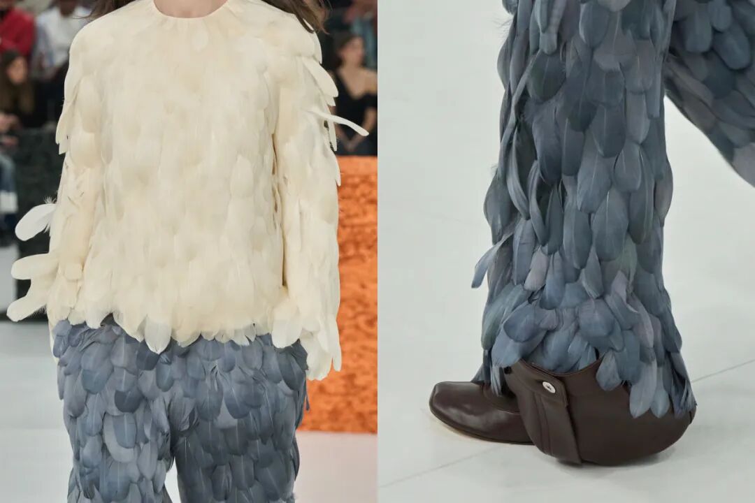 Jonathan绝对是个二次元男孩儿,他用羽毛来拼接成一条牛仔裤,又炫技又浪漫…
