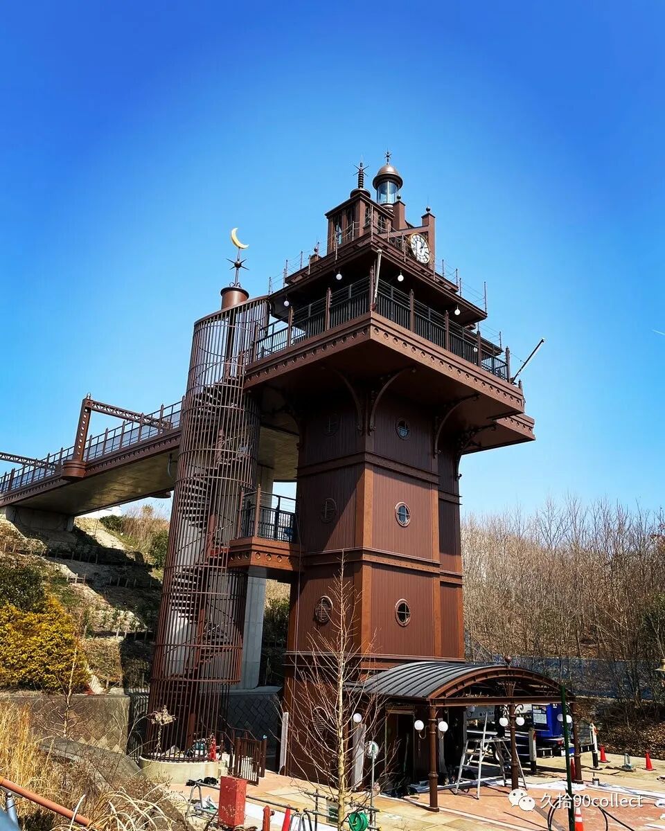 在地图上可以看到「青春之丘」部分除了「地球屋」,其斜对角还有一座别致的塔。据介绍,这座塔位于吉卜力公园北入口处,将是公园首个迎接旅客的景观,由旧公园(爱·地球博纪念公园)的管理大楼重新修整,利用斜坡与地面高低差,并结合《天空之城》与《哈尔的移动城堡》元素,改建成具有19世纪末欧式风格的升降机塔。
