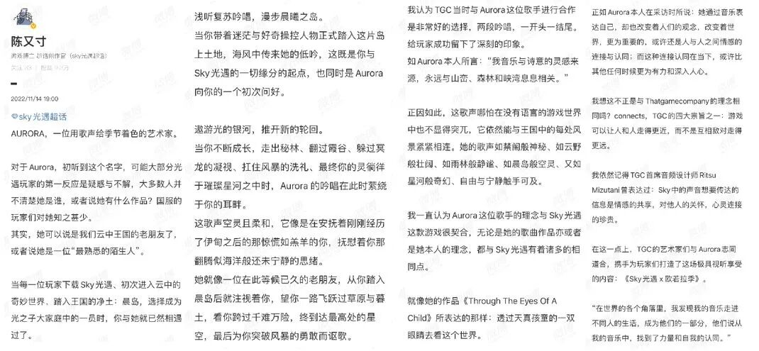这场全球同步举行的音乐盛会预计可以连接4000多人同时在线,同屏进入沉浸式、可互动的音乐之旅,在TGA闭幕后,这场音乐会的首演直接登上微博热搜,很多玩家也在社交媒体上记录自己在《光·遇》音乐会上的种种感动。