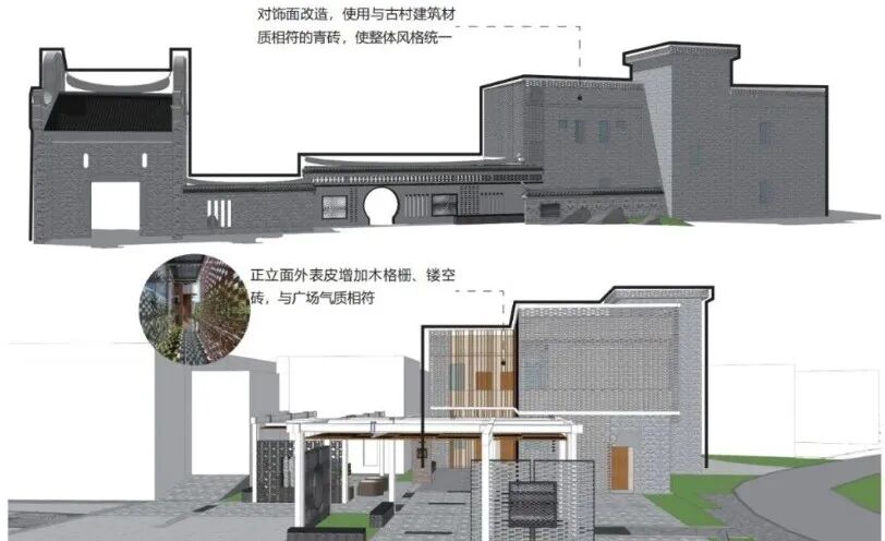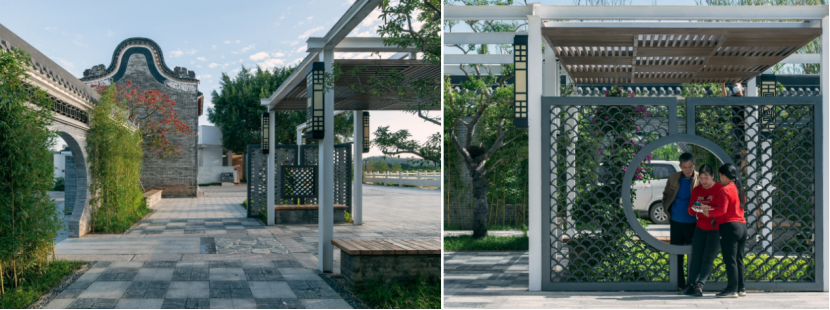 乡村的群体性活动特性,决定了对公共空间的需求。村民广场,既是文化的传承,又承担着功能性。设计团队在入口处设计广场空间,以框架构筑物与另一侧青山周平的《陋园》对称;并点种榕树呼应村口的百年古榕树。