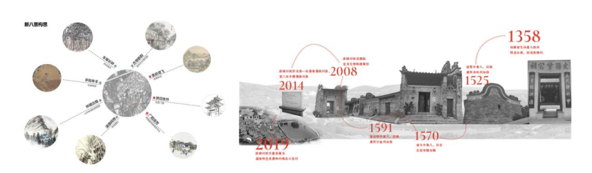 设计主题是“历史场地上与时间和空间的对话”,把港头村源远流长的历史文化贯穿于场地设计之中。通过对“新八景”的再设计来应对已经消逝的“老八景”;以古村落为中心的特色文化氛围、古朴典雅的现代功能建筑;“新八景”在景观层面上实现了对遗址的回忆与新生。