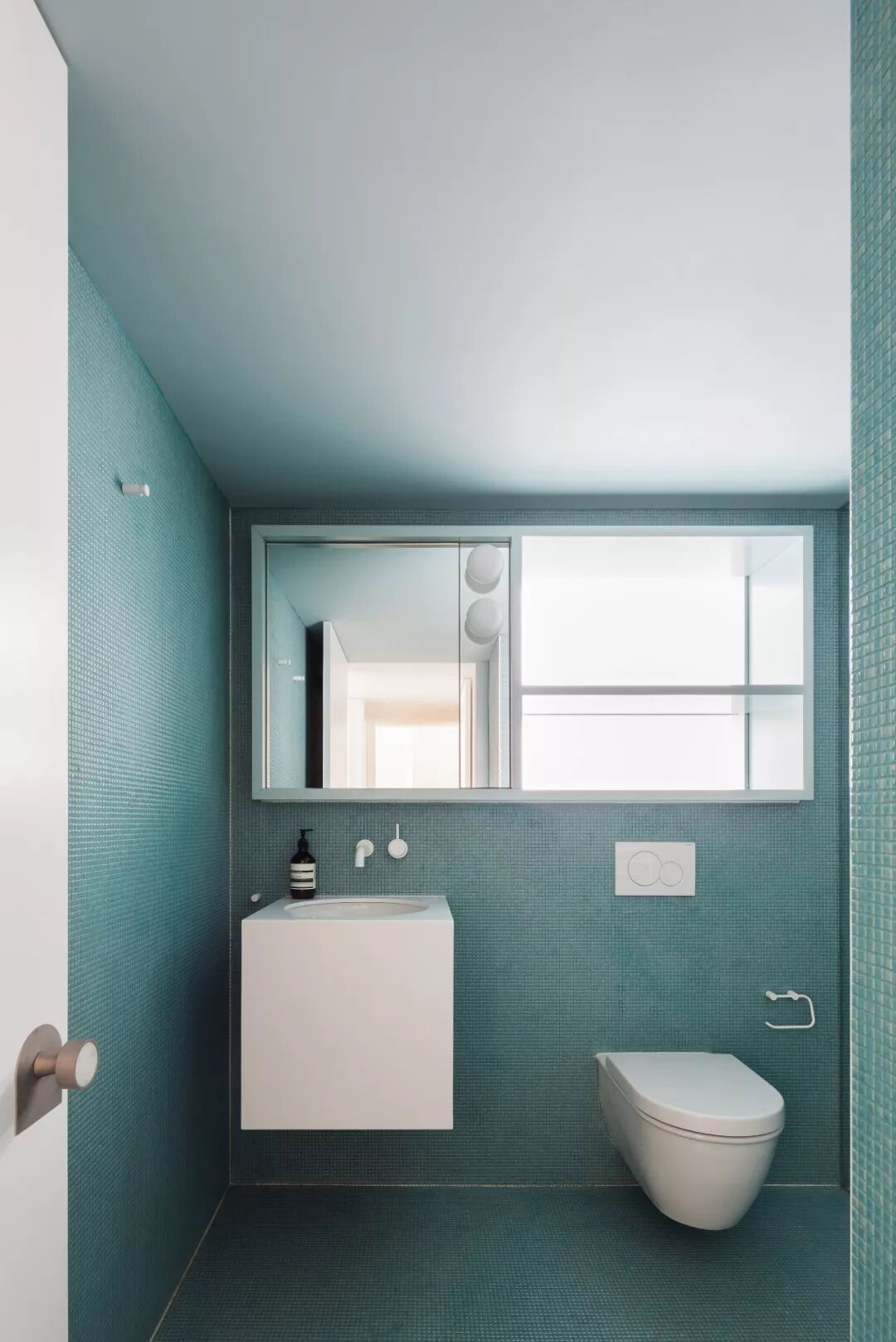 彩色砖块拼接的房屋外墙让人着迷,这种大胆运用色彩的方式也被沿用到室内。位于二层的浴室分别以三种不同颜色的瓷砖装饰,营造出奇妙梦幻的氛围。