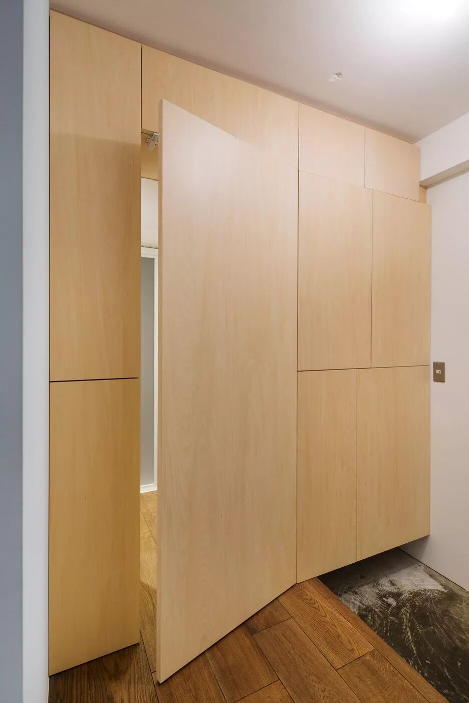 设计的灵感来自于 Opera 蛋糕,木质推拉门和地板用不同的棕色木板制造出渐变的感觉,白色的天花板犹如绵软的奶油,给人舒适又甜美的感受。