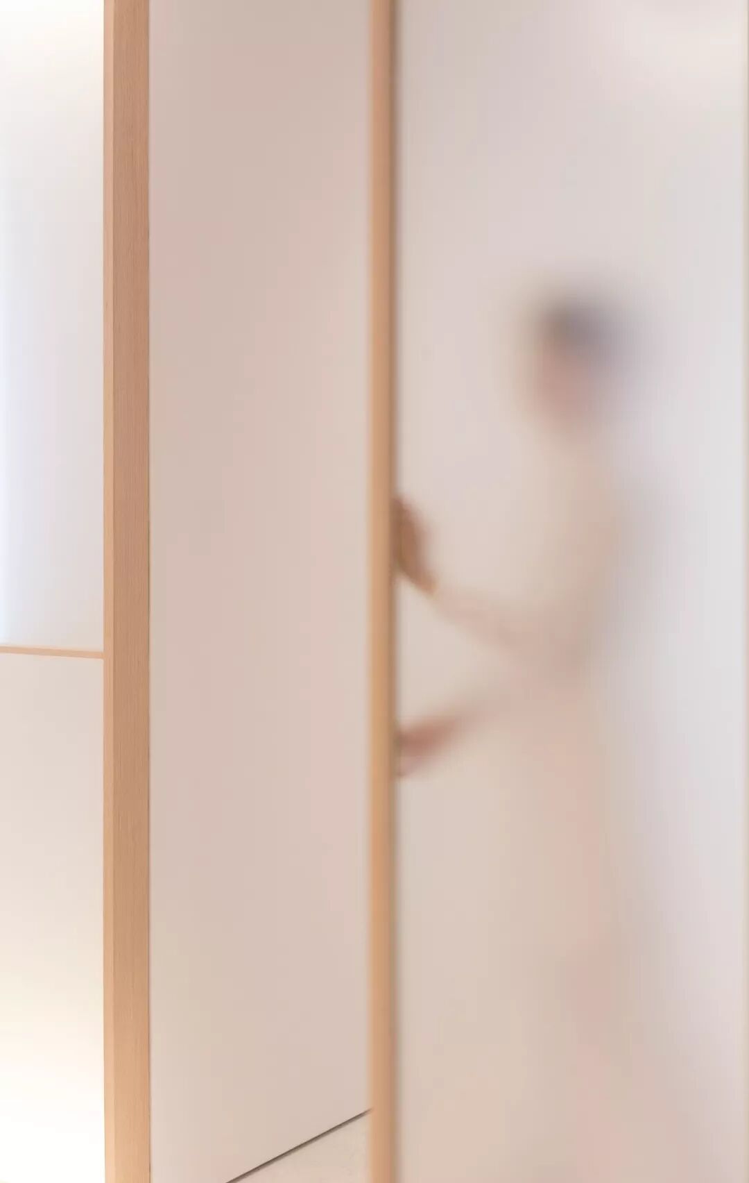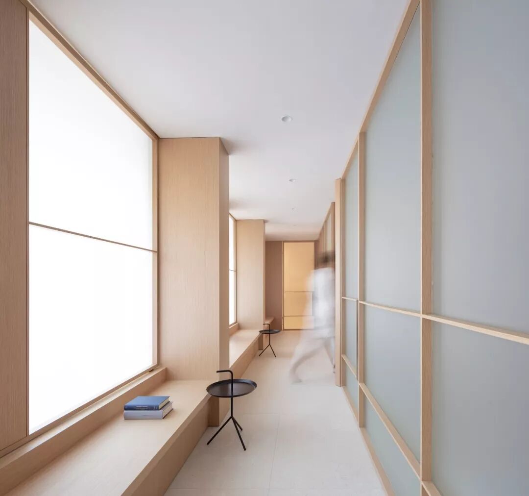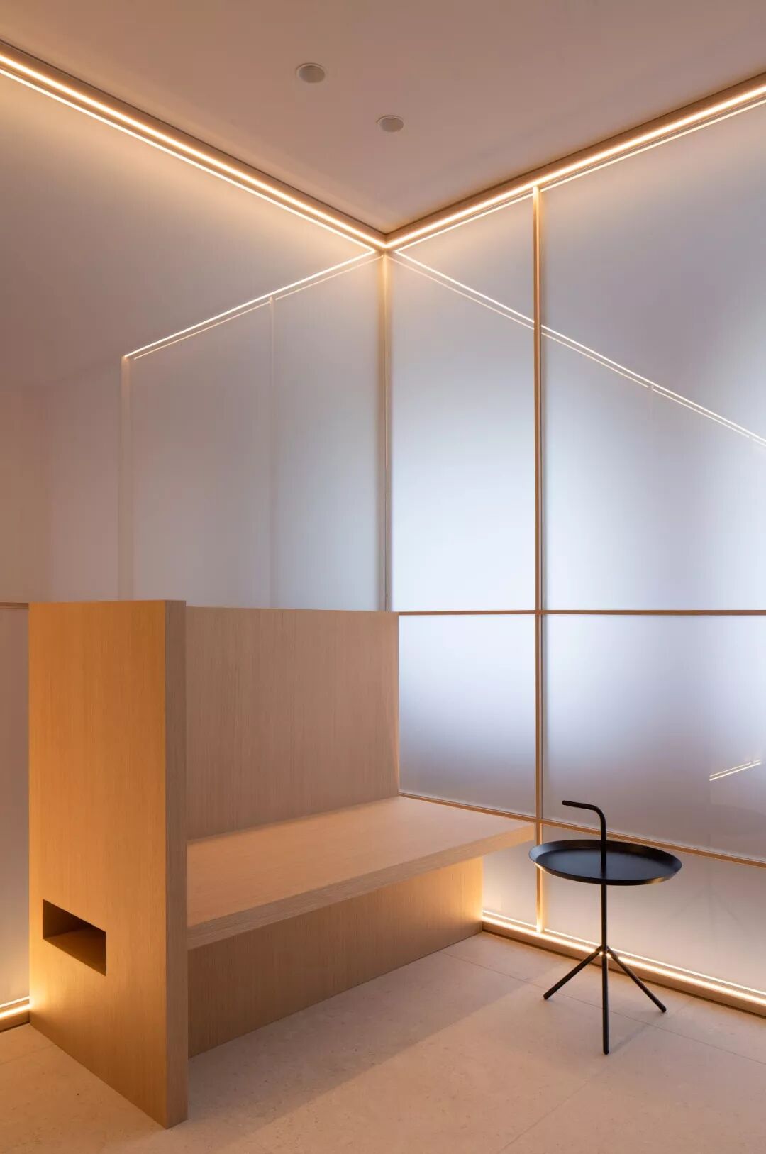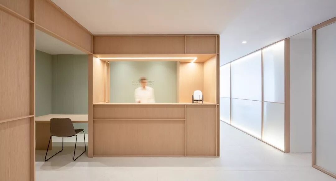木制结构打造宁静温和的环境,搭配半透明玻璃屏幕,更加温馨舒适,减轻客人的紧张感。
