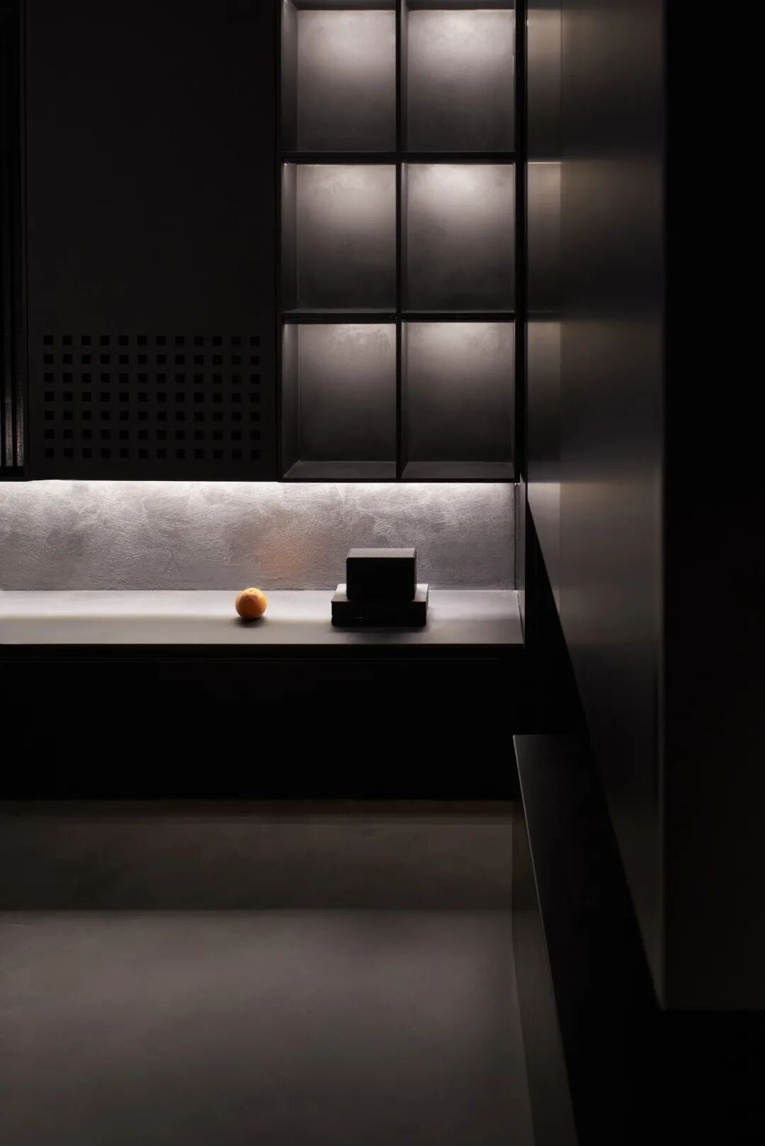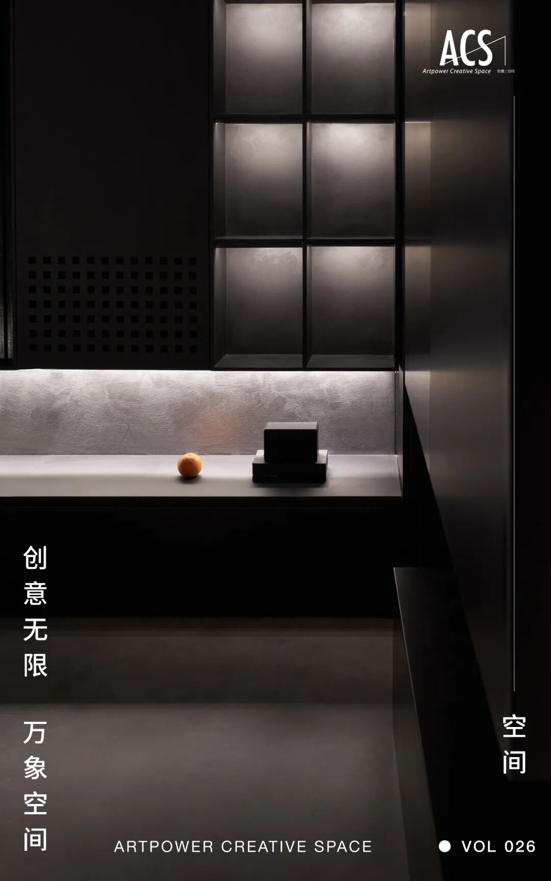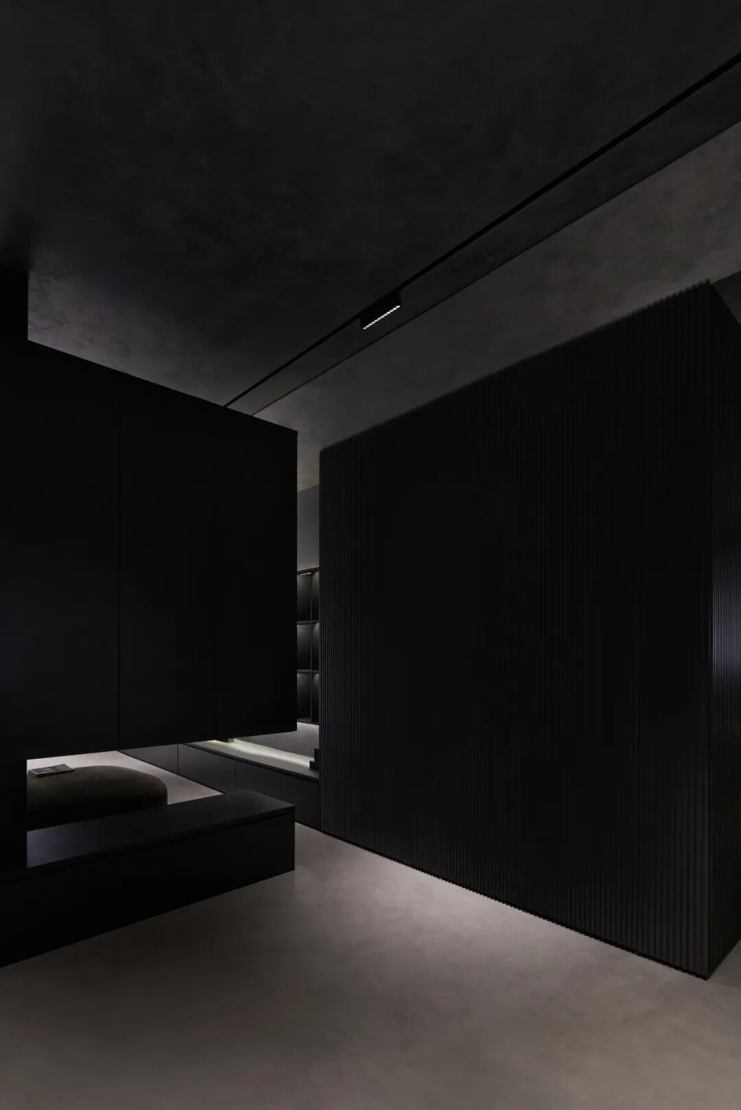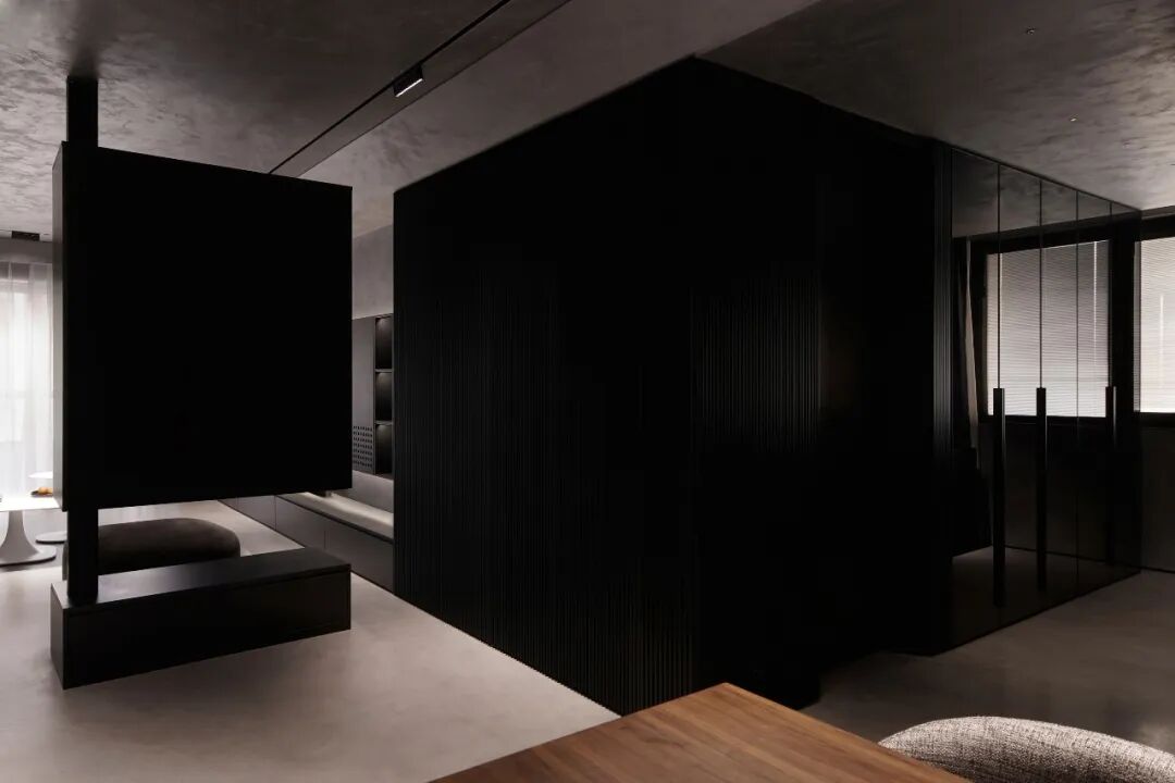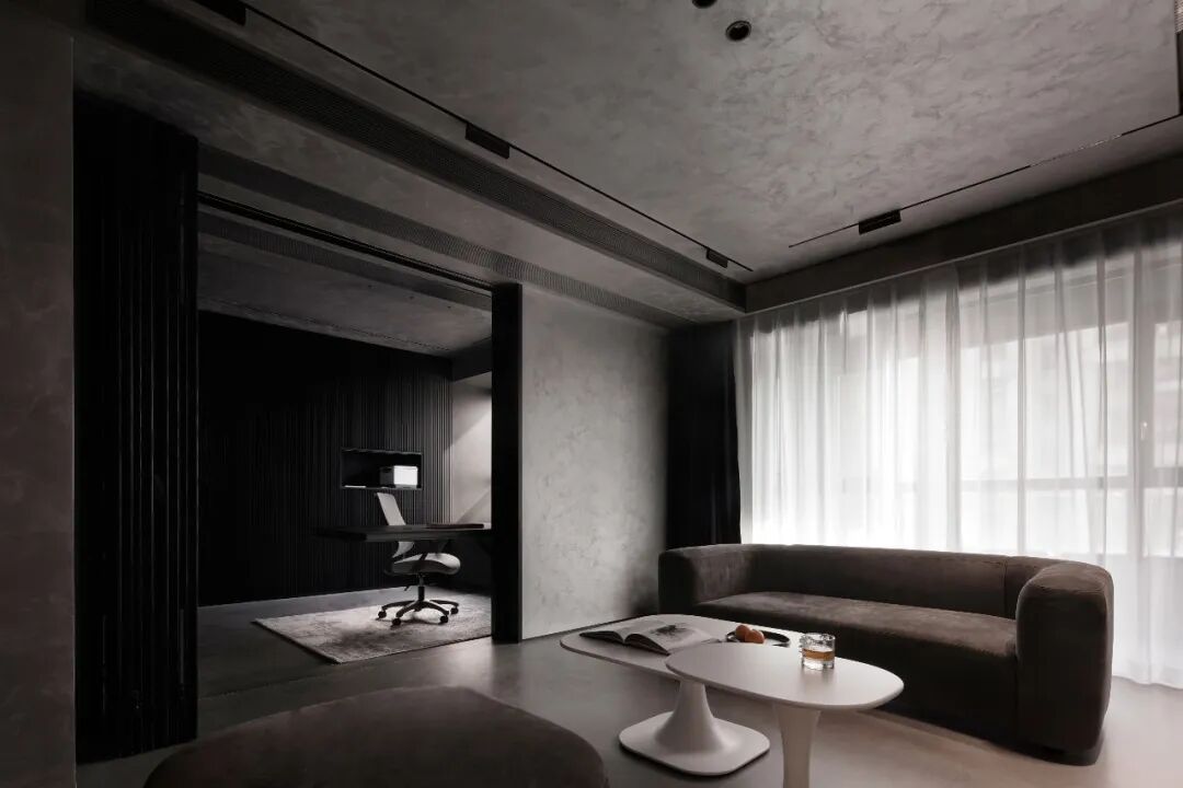 宇宙终极的浪漫,是黑幕里闪烁无垠的星河,低调而璀璨。这方空间正是模拟了宇宙这一特征,孤独而深邃,原始而平静,在充满神秘力量感的黑灰色调空间中布满寻光的印记。