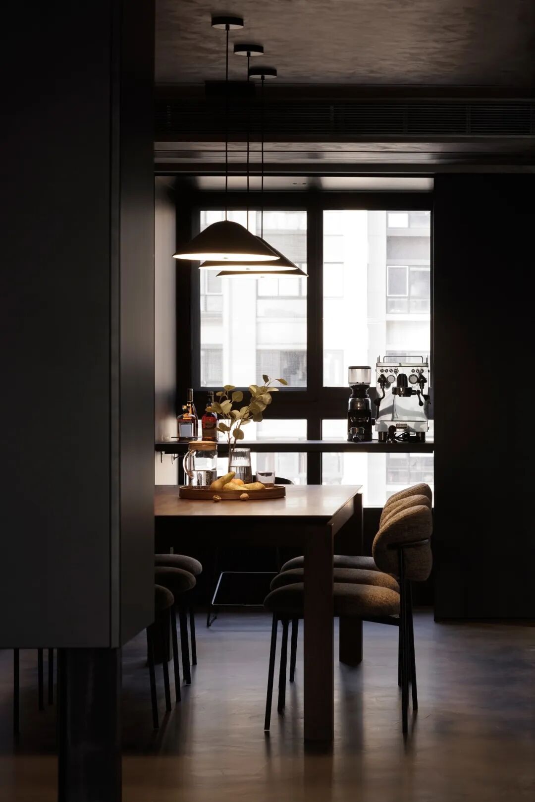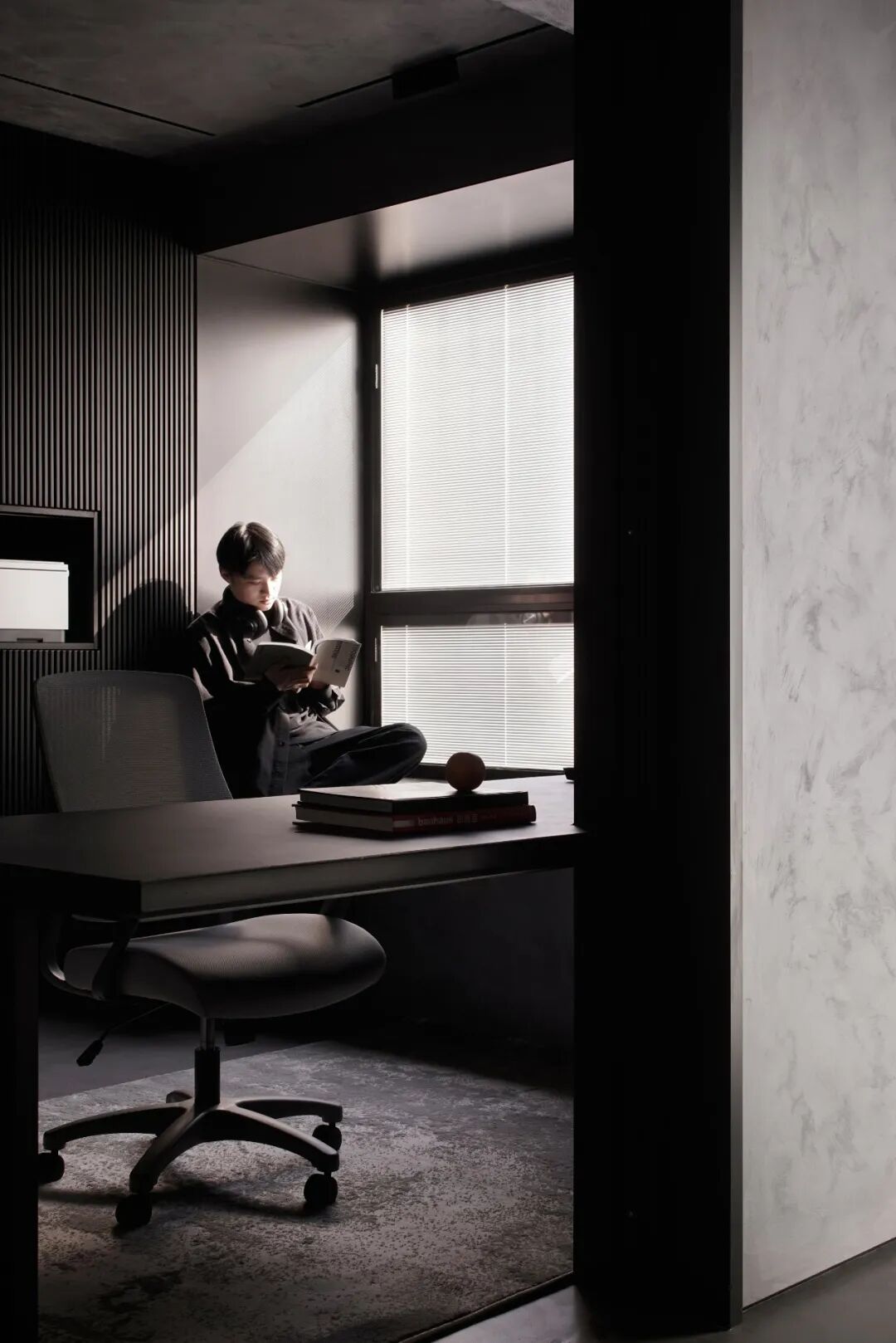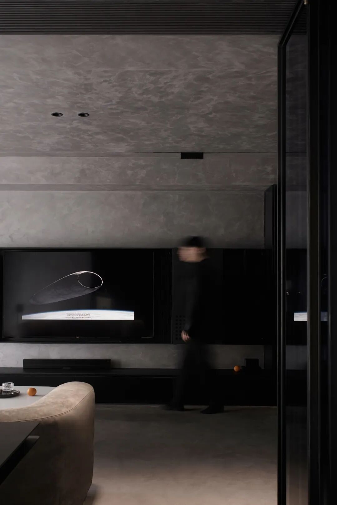 微水泥塑造的空间更显辽阔与旷然,仿佛一方神秘的宇宙。
