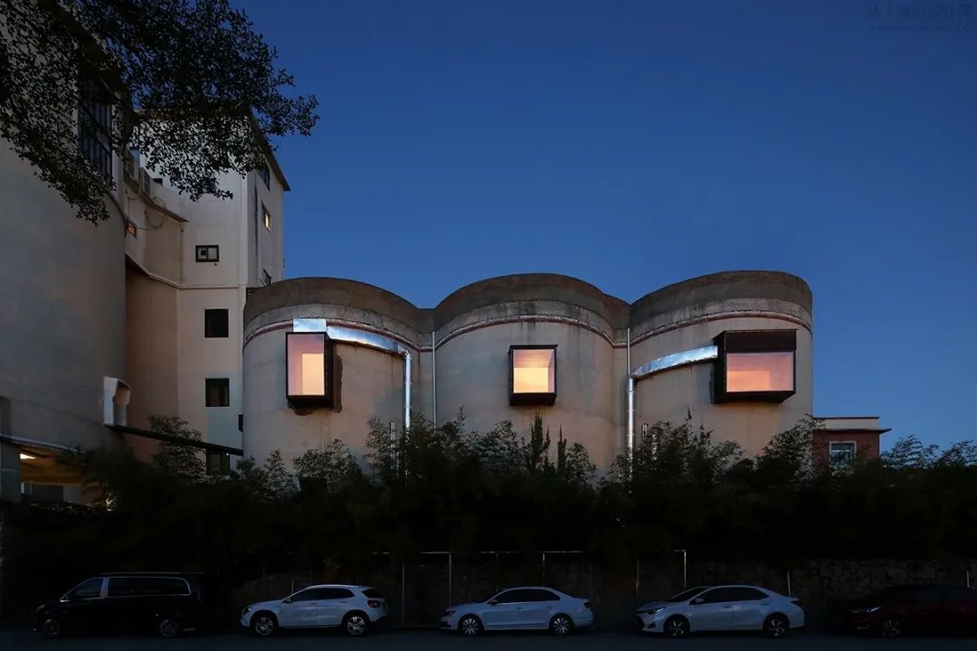 由水泥筒改造而来的15米通高的茶室,摄影:张沐沐