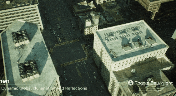 而另一项可以让观众觉得拟真的地方在于光照细节,Lumen 是一套全动态全局光照解决方案,能够对场景和光照变化做出实时反应,且无需专门的光线追踪硬件。该光照系统可以让上面提到的多边形技术实时渲染,包括一粒微小的石子,其中的漫反射和镜面反射都能做到小到毫米级、大到千米级的级别。