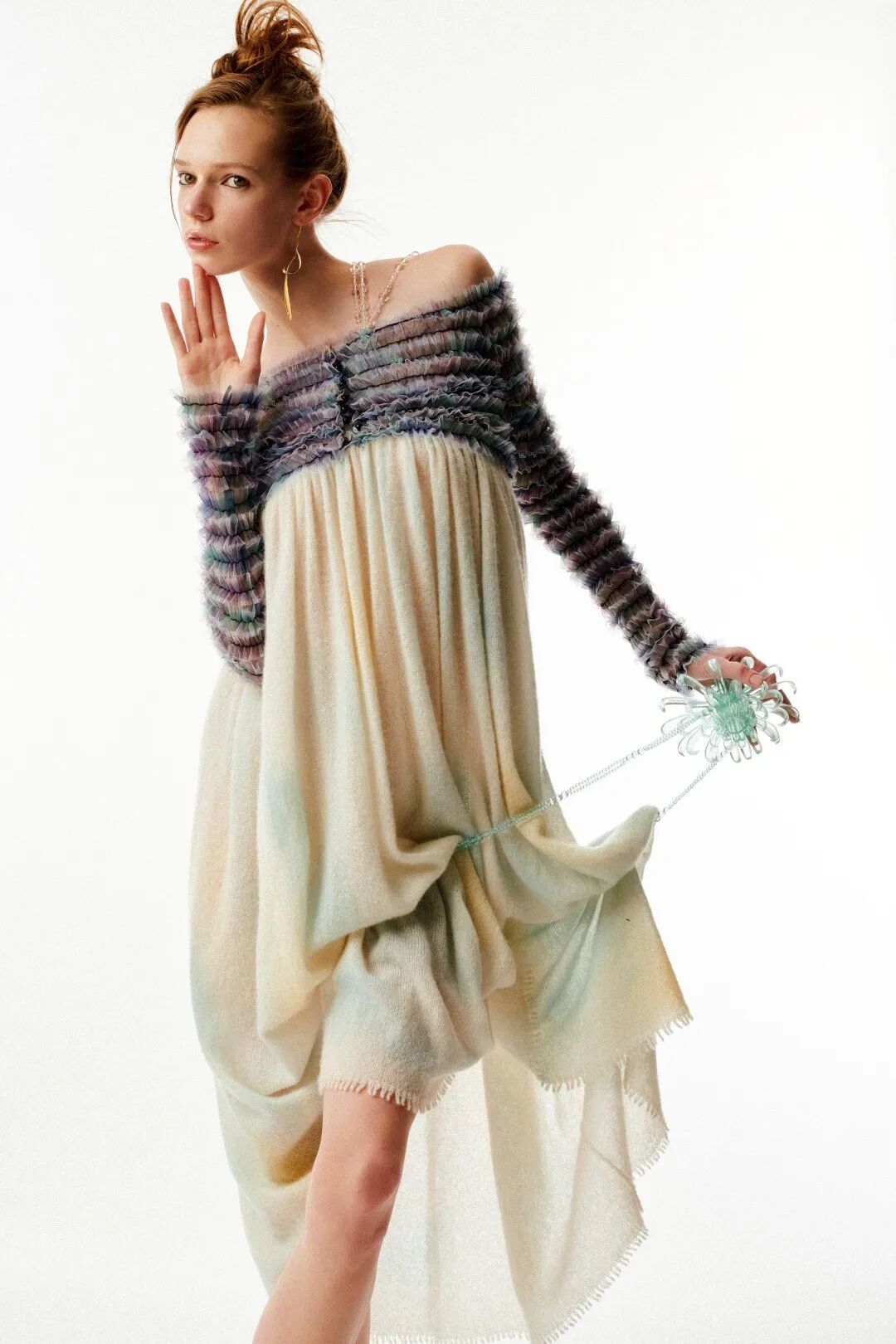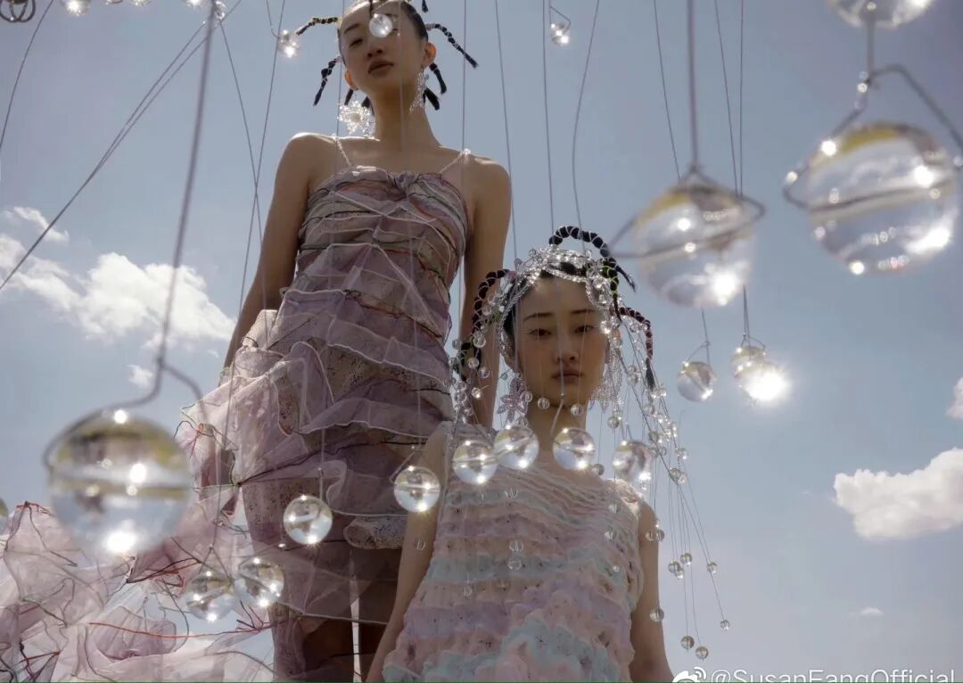 凭借仙女般的设计,Susan Fang将人们带入到一个空灵的世界,它有Molly Goddard的轻盈、Simone Rocha的灵动、以及Cecilie Bahnsen的浪漫,你能够体验出女性不一样的性感。