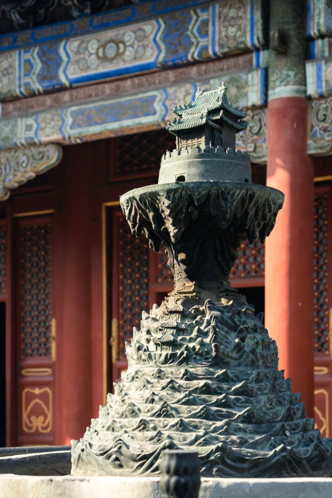 雍和宫文物——须弥山,很多人在此烧香请愿。