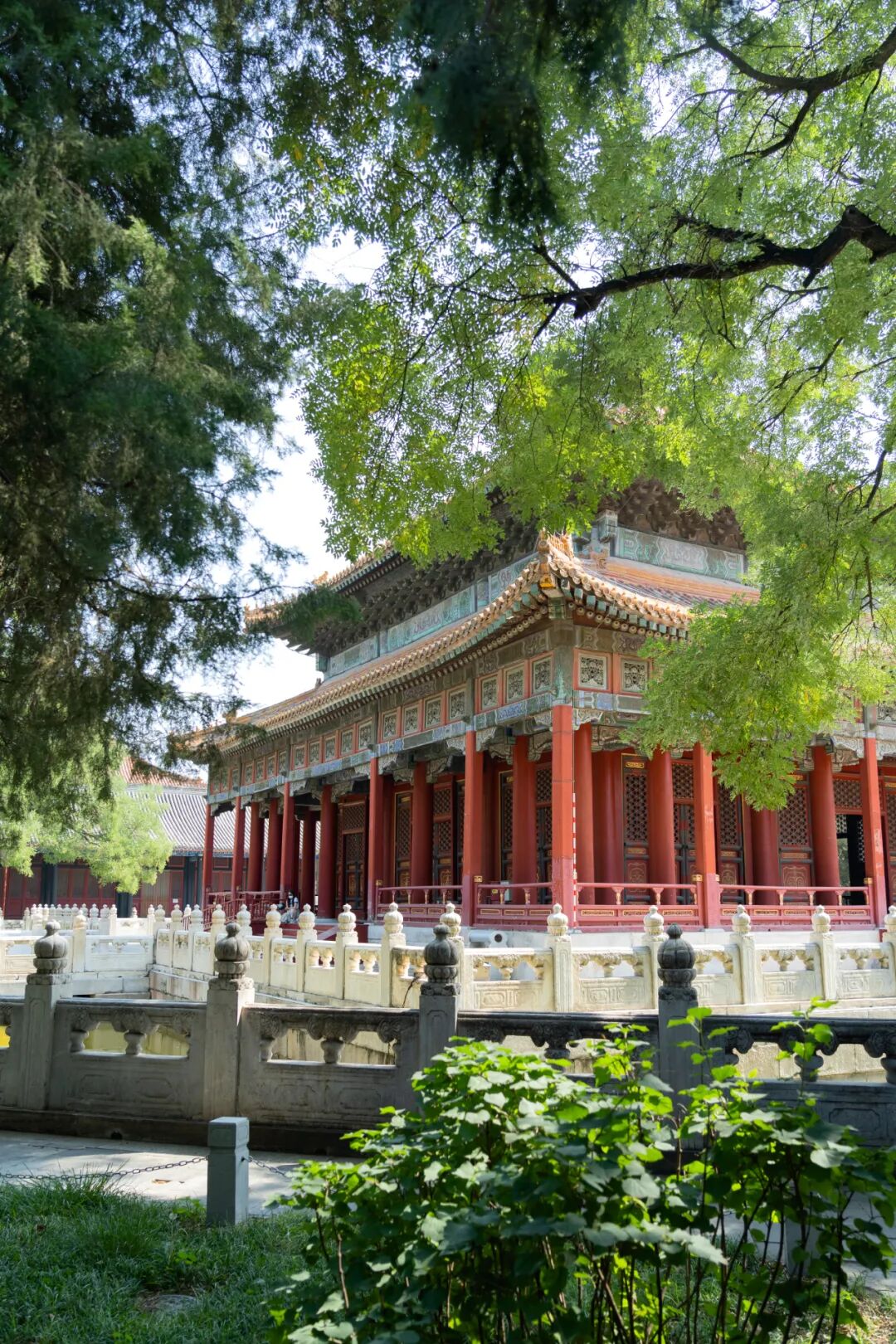 作为中国古代唯一专供皇帝“讲课”的宫殿,刘墉主持修建的辟雍,建筑设计自带肃穆、尊贵之气。重檐攒尖大殿正中悬挂着乾隆皇帝亲题的二字匾额,东西南北各设有一座汉白玉桥,其下引地下水环抱主体建筑,风水颇好。