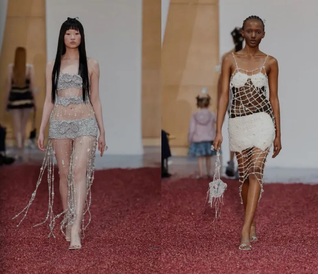 计师试图用设计的语言来提醒大家未来掌握在自己的手中,本季由经典睡衣轮廓出发,镂空爱心笑脸、四叶草、丝带等,极具SUSAN FANG式少女感,由此探索自在舒适的新可能。