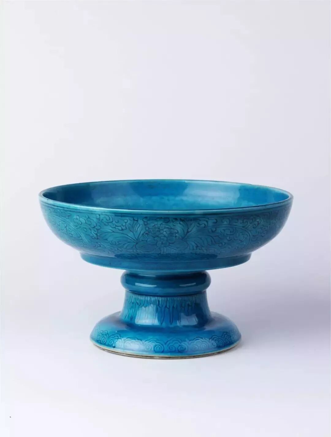 明宣德时期制瓷发展迅猛,孔雀蓝取得很大进展,特别是统治者对御厂瓷的严格要求促使其单色釉、釉下青花制品精益求精。明代孔雀蓝官窑瓷器,在当时就极为名贵,成功的作品不多。现在能够完好保存下来的更是寥若晨星。