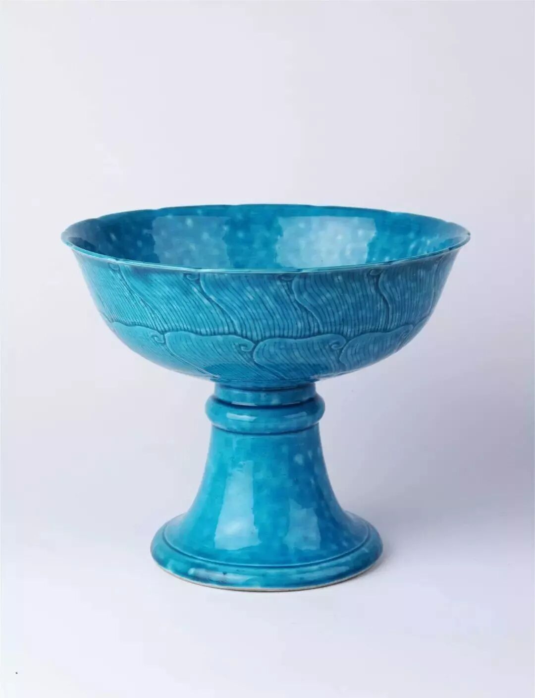 但如果配方不够正,则可能蓝中带绿,变成孔雀绿釉,也称珐翠: