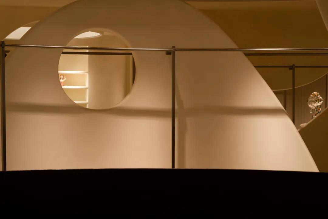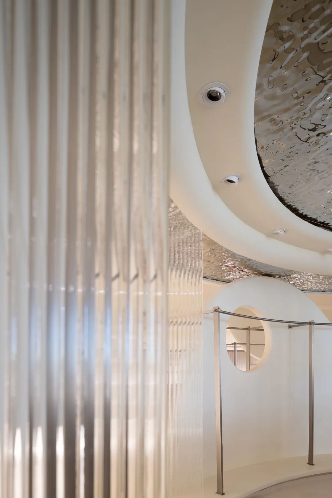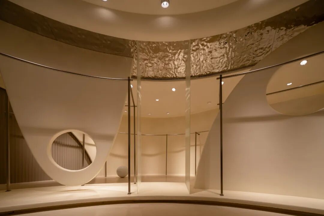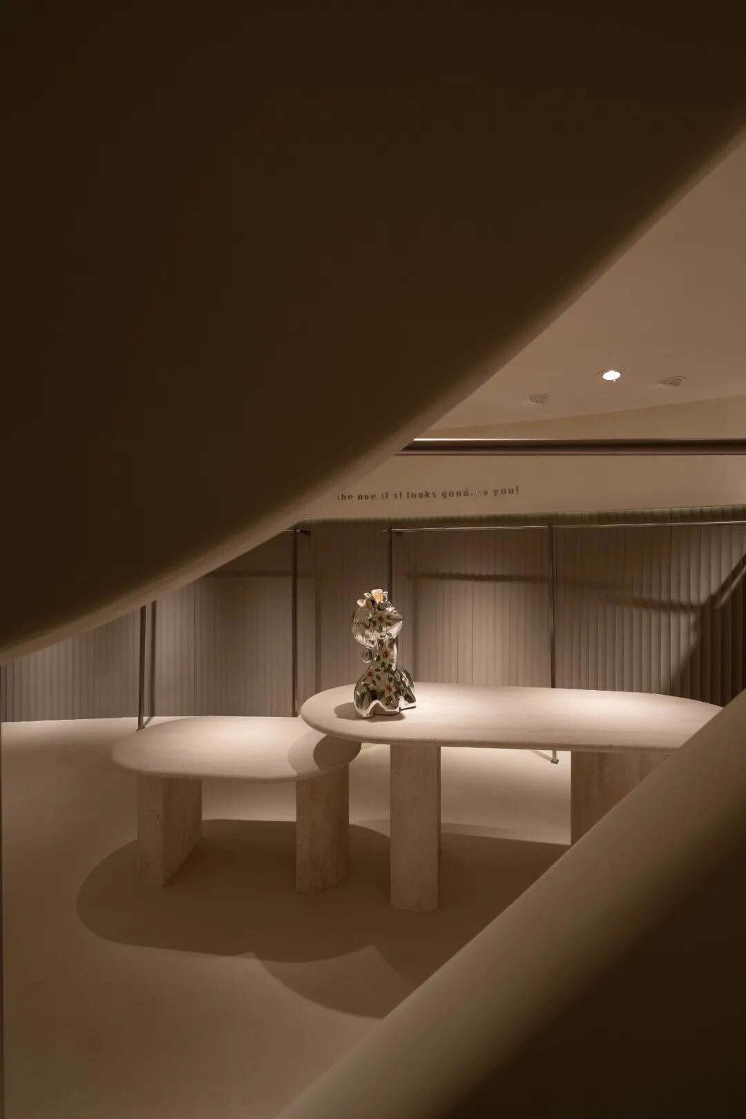 灯光设计配合产品,在达到展示效果的前提下,同时映照空间曲线,在整体中通过光影营造出梦幻之感。