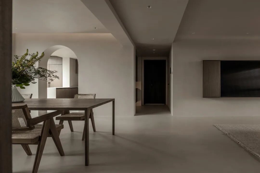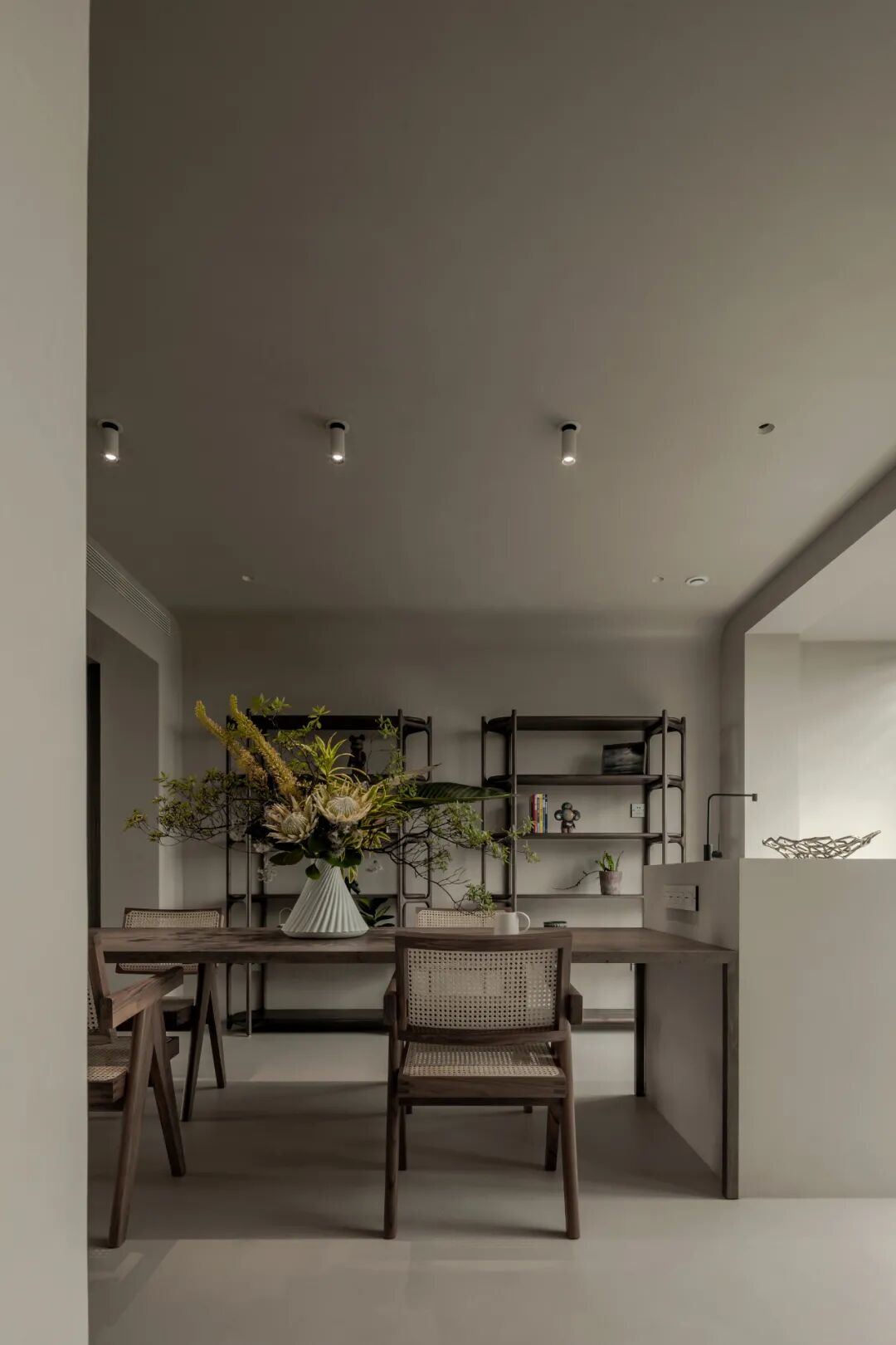 When opening the home, the entire space is left with a large area of wabi-sabi beauty, which carries a pure and unforgettable artistic conception. The left and right sides are the casual dining rooms for guests, and the more private sleeping space, cloakroom and Buddhist hall are entered forward. The free interspersed and intimate connection of each body, the movement is clear and reasonable, to a large extent, expounds a simple and easy life attitude of the dweller, and releases the dweller's soul and thoughts.
