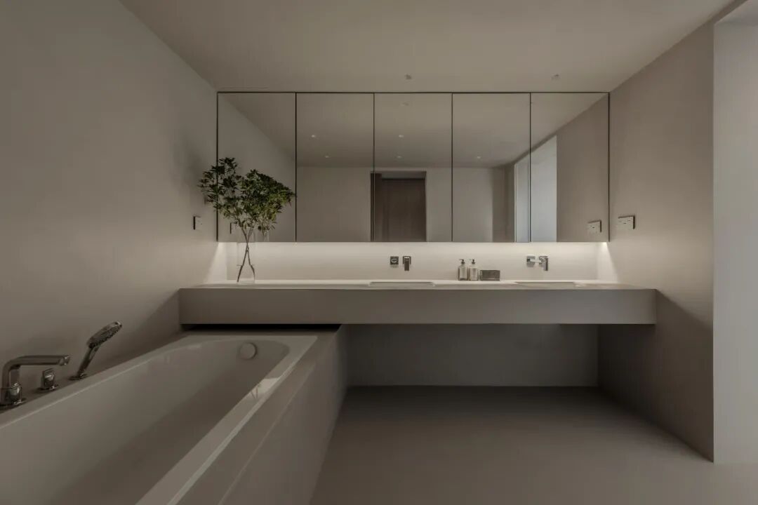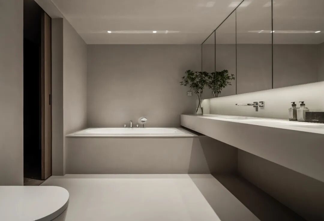 卫生间以自然的搭配营造古朴归真的气息,给空间做减法且给建筑适当呼吸的空间的同时,又匠心于细致入微的细节塑造。设计师从家具的形制、空间流线及色泽、绿植摆放,均镌刻着自信大方的悠悠风骨,营造至简的侘寂美感。