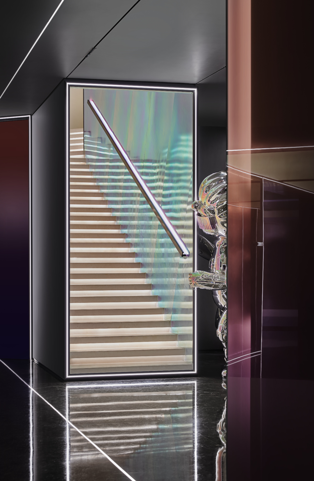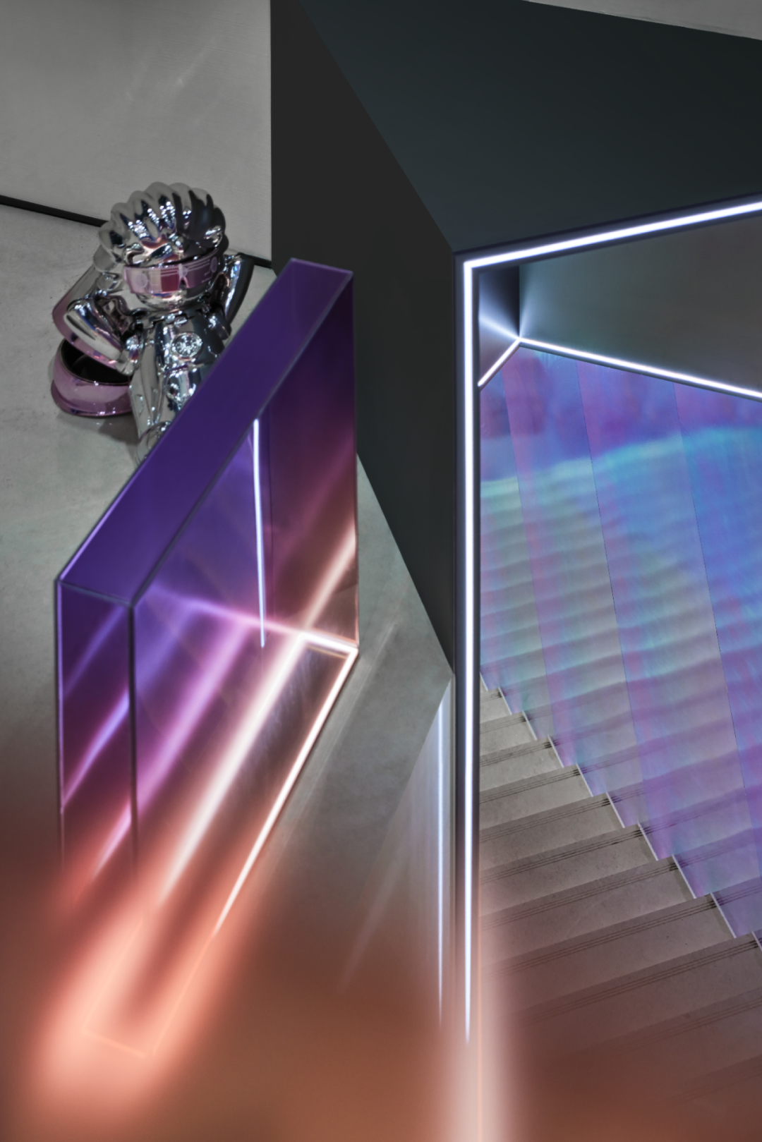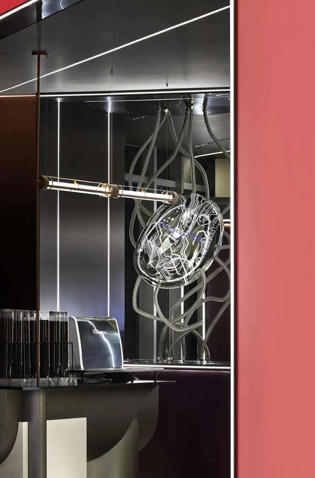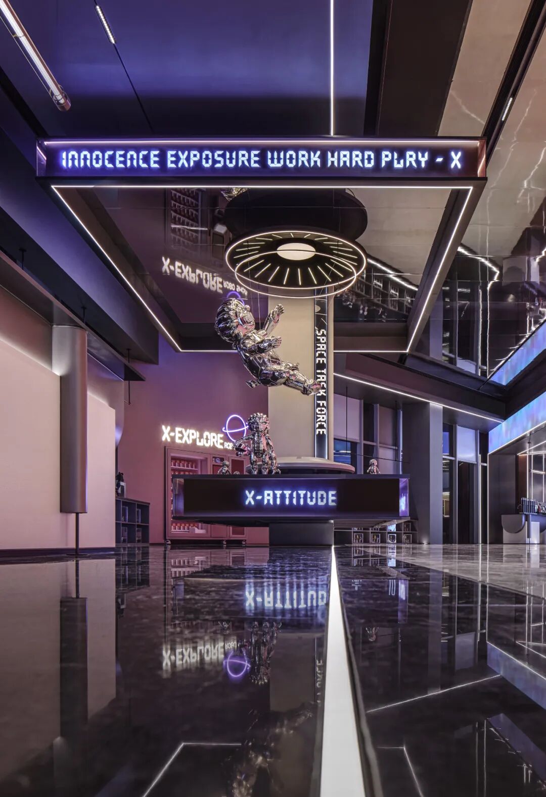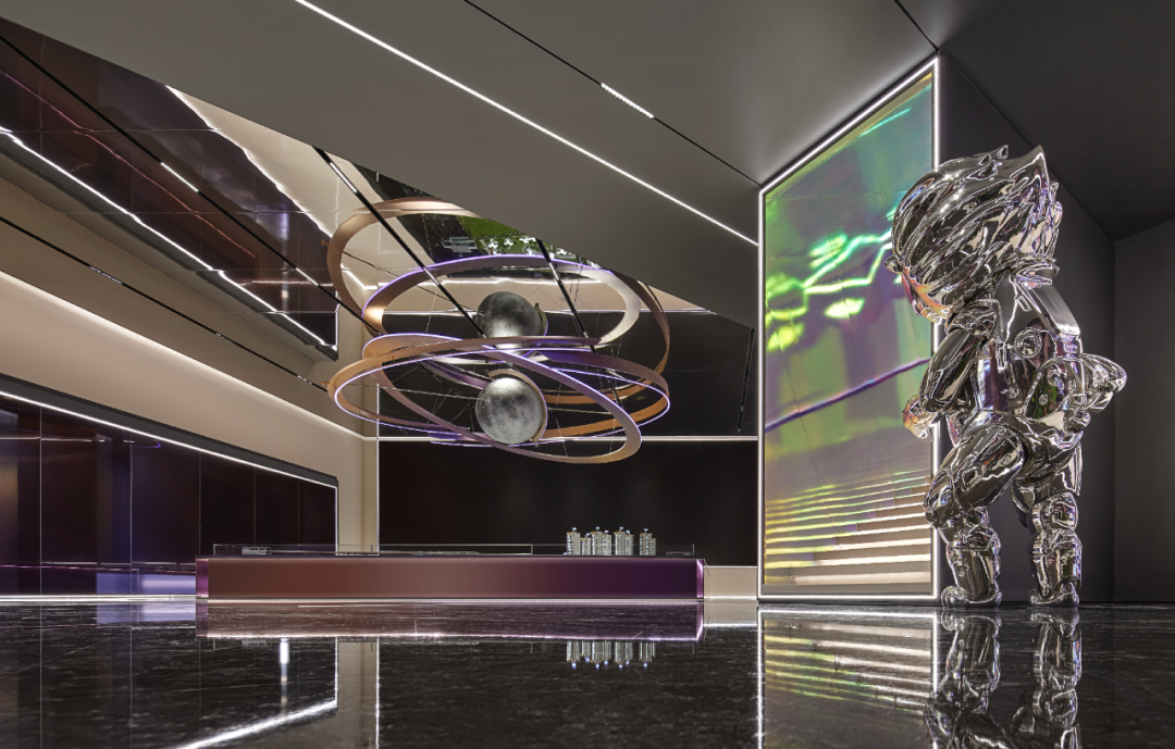 抵达太空休息站,色彩、光线、材质叠加的镜面倒影,烘托出宛如银河星系的氛围,漫游于苍茫宇宙的遐思构想间,直击科技想象的震撼,充分演绎关于未来生活的畅想。
