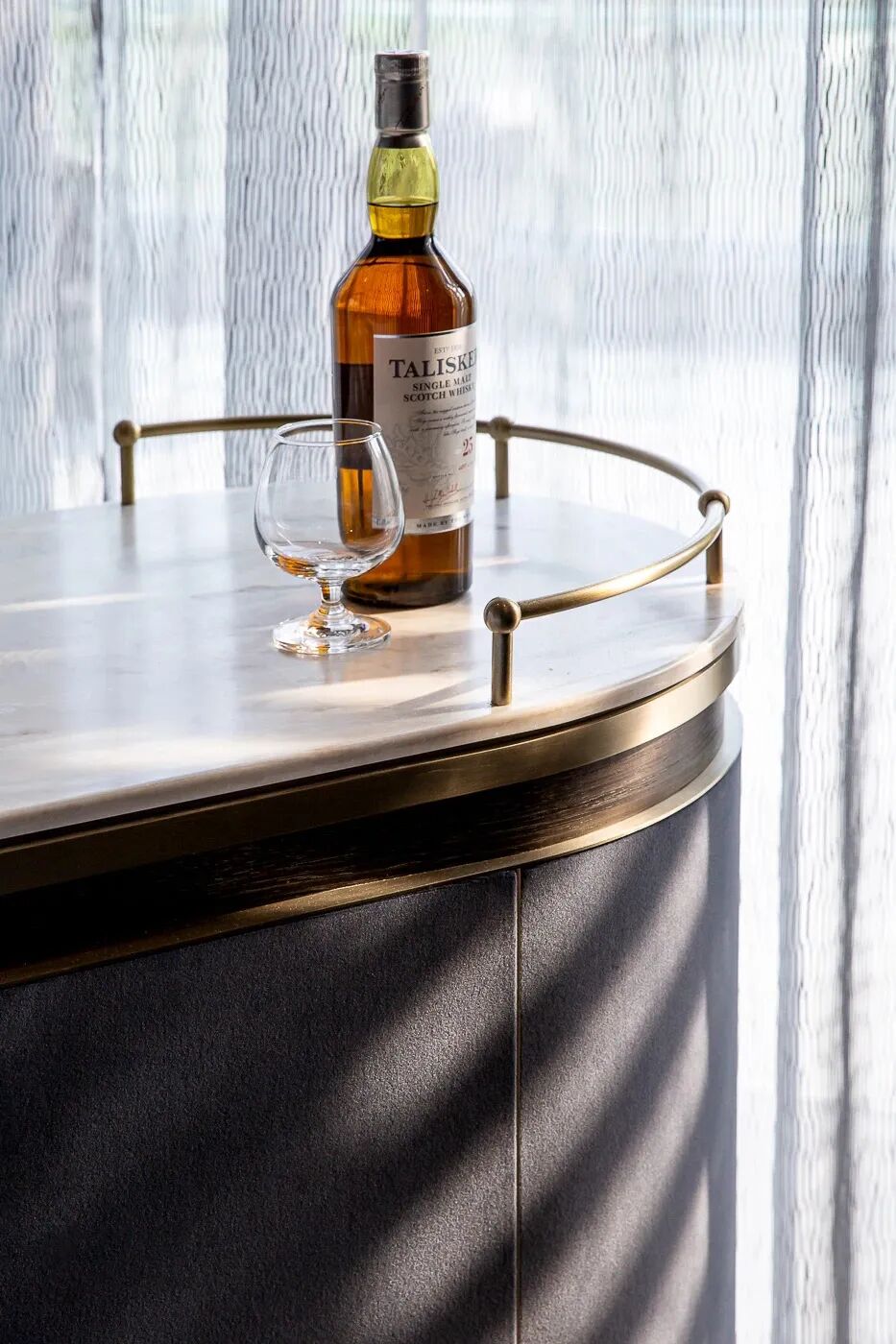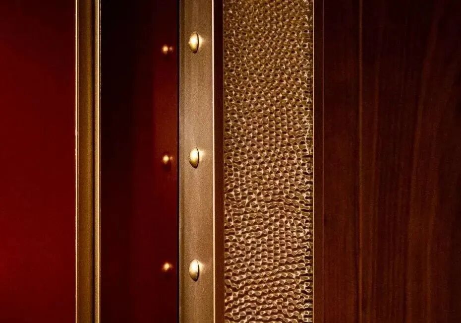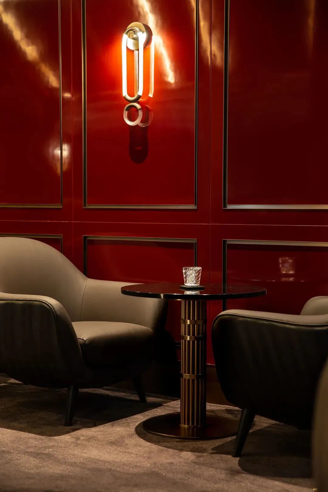 设计师从大量吸音材料的运用及其他装饰物料的细节令此空间的回音大幅减小,宾客们无需大声讲话便能非常清晰地听到对方音量,同时亦不会被其他宾客打扰。这里无疑为成为了一处集聚兴奋、期待、而又不失格局的现代又时尚的空间。