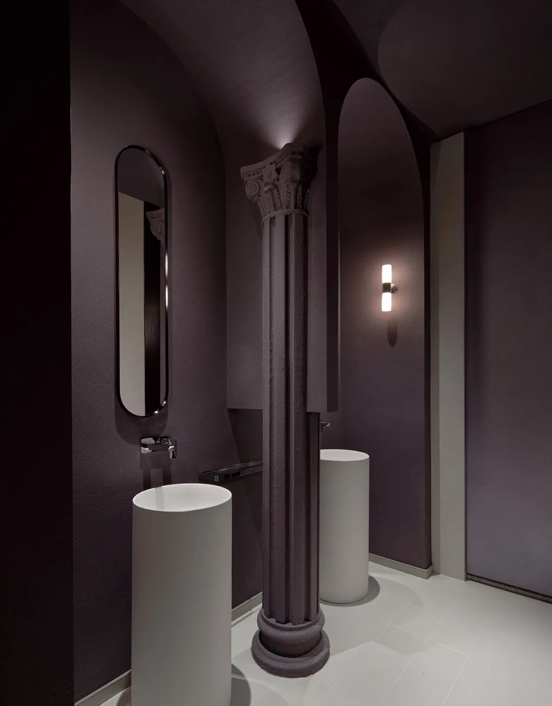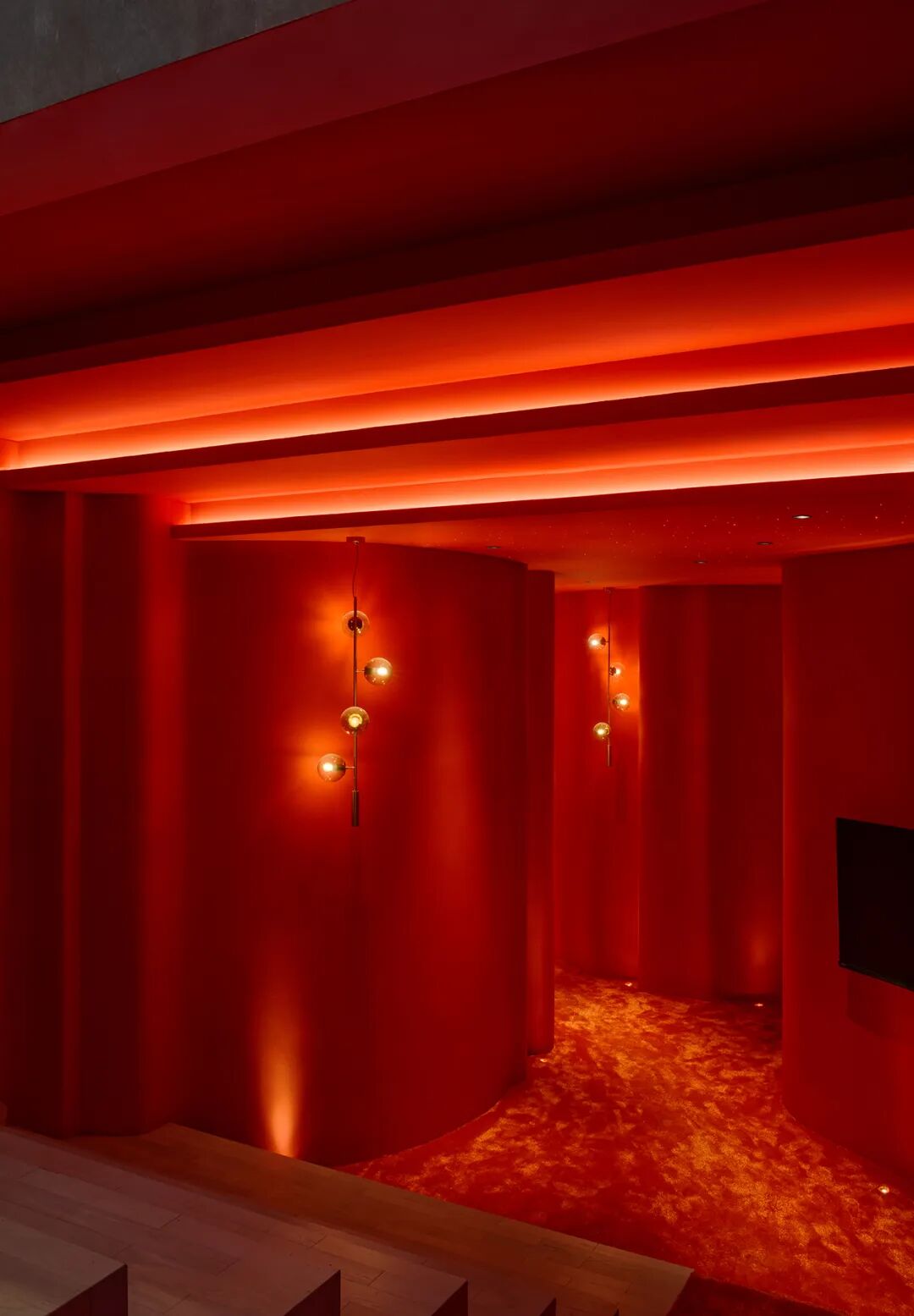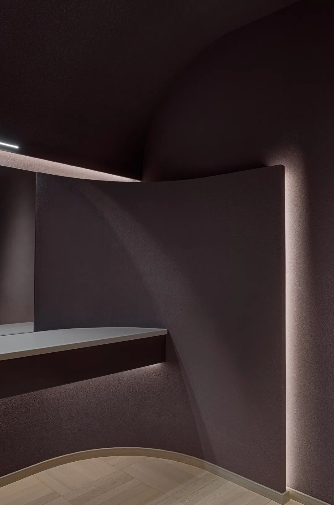 作为一个塑造美的地方,摒弃传统硬朗的棱线,空间中柔中带力的曲线,让原本的空间变得灵动,以此体现出在女性身上独有的特性。一层空间主要以品牌展示以及接待服务等,向消费者展示完整的品牌空间形象。