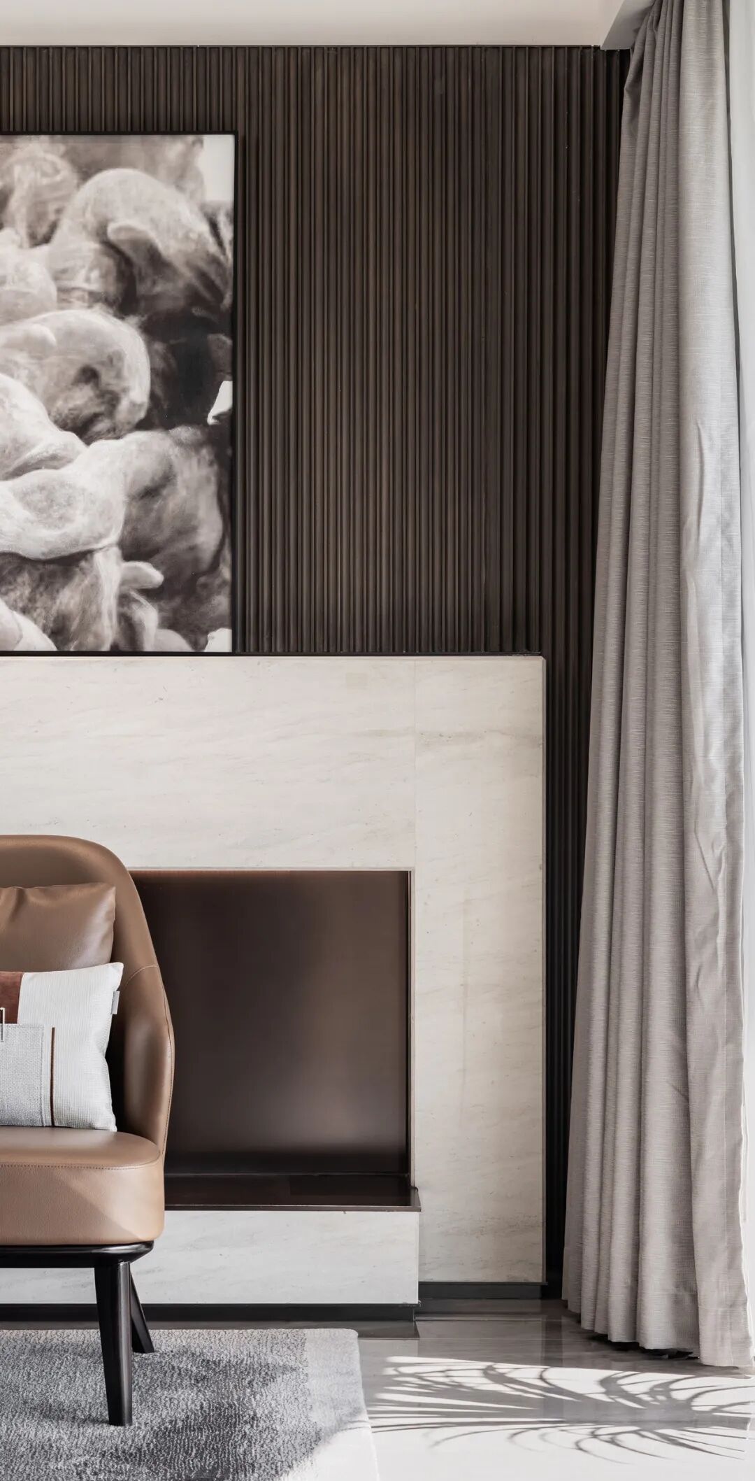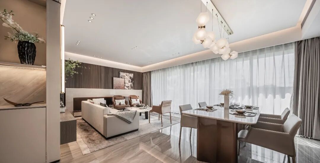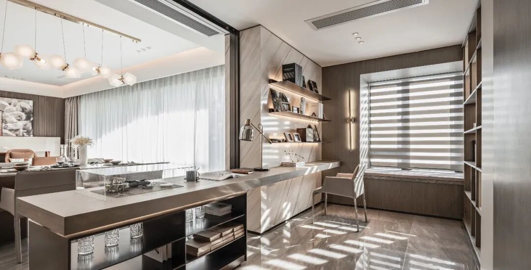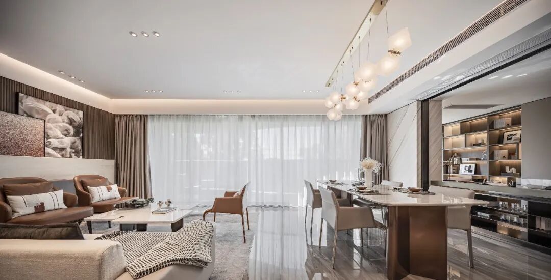 室外球场与湖景的广阔风光,造就主人家热爱运动、亲近自然的天然优势。JLa设计集团的软硬装设计团队,从两个维度作为本案考量:即大平层户型复合的住宅功能及精英群体对品质生活的审美取向,打造、建立让居者回家瞬间,便可感受到与其身份气质相配的场域氛围和空间精神。