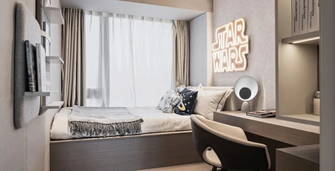 孩子保持着对世界的好奇,他们的个人中心需要被认真对待。天马行空的想象权利留给儿童。软装以星际战争主题霓虹灯打造孩子心中的宇宙,星际中遨游,在正义伙伴的陪伴下成长。