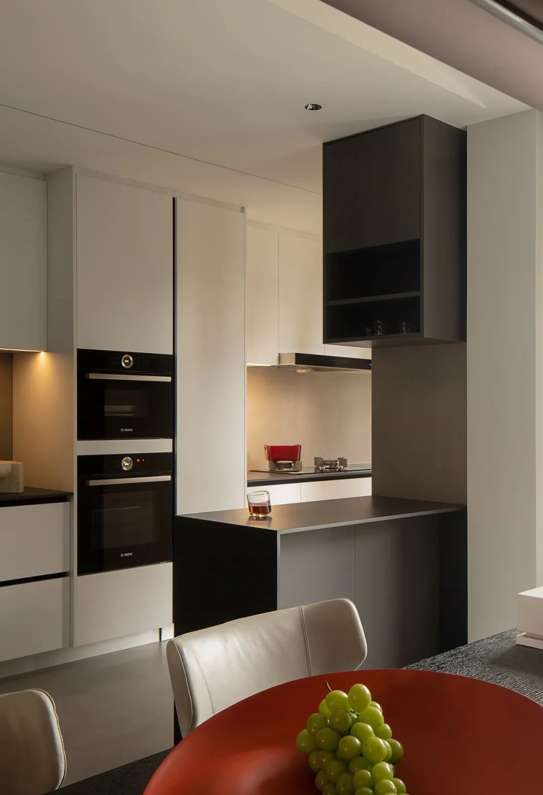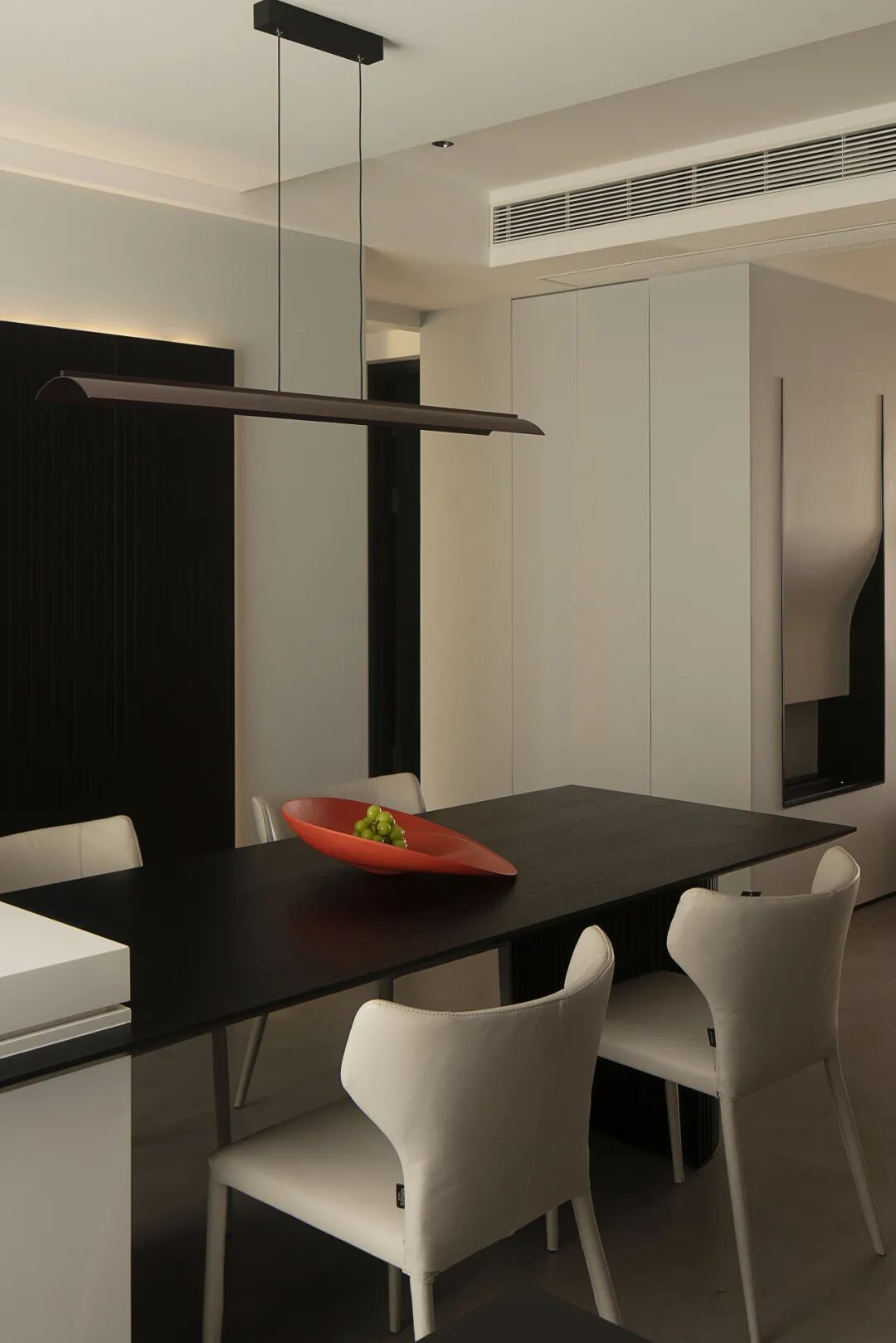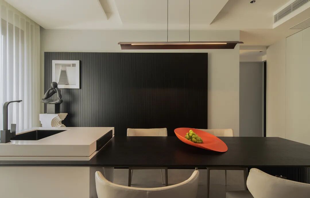 色彩控制空间的基础语言,而纯粹的黑与白,给予空间更多发挥的可能性,犹如一张白纸上的墨色一点,将更多的形制留给人去创造生活痕迹。