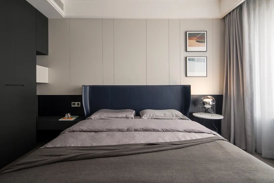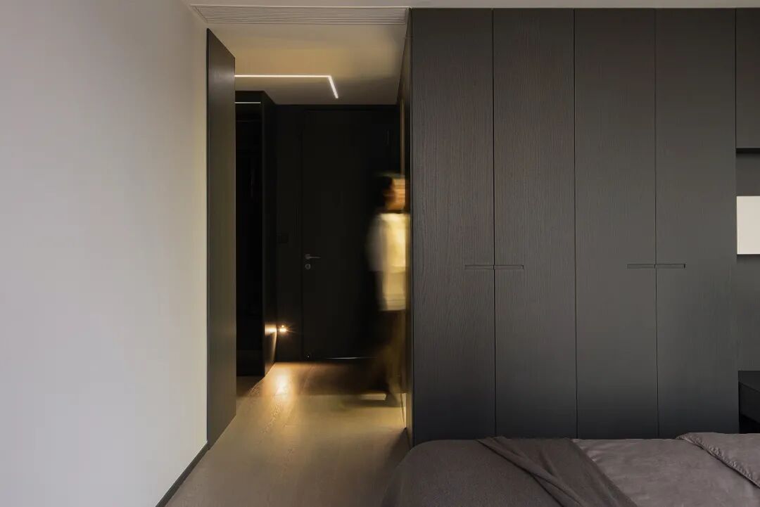 无主灯设计通过线型光源,打造出空间的几何质感。主卧一体到顶设计的衣柜,在合理的分区规划下拥有强大的收纳能力,同时也便于日常的保洁整理。