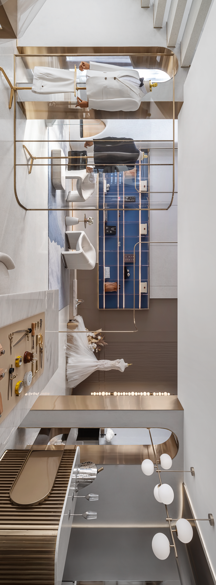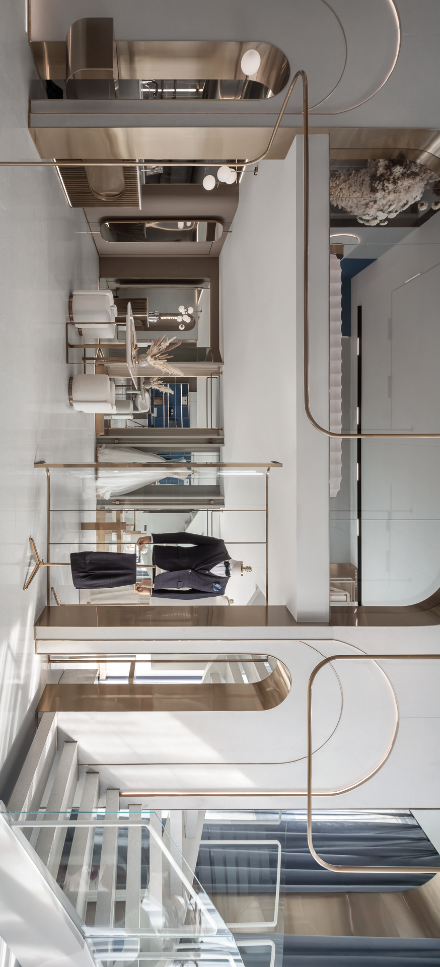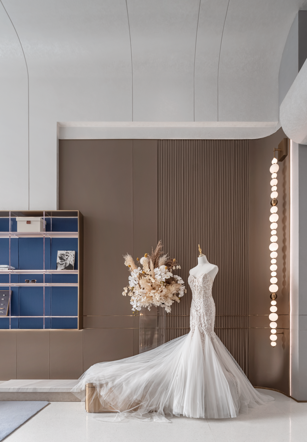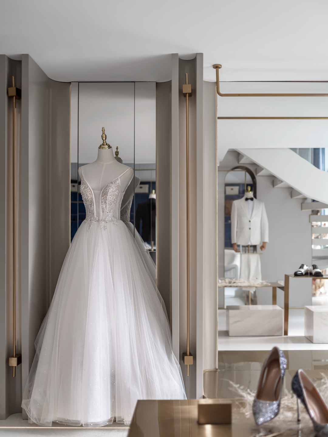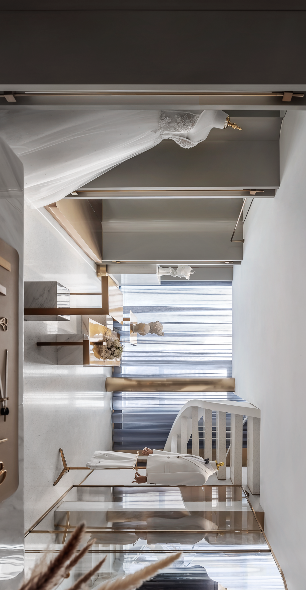 本案为一间私人定制服装店,主营婚纱、礼服、配件设计等,项目位于年轻、时尚、多元化的新型商业环境——沈阳大悦城。针对公寓式户型带来的多样可能性,打造年轻活力的新潮经济和经营理念。