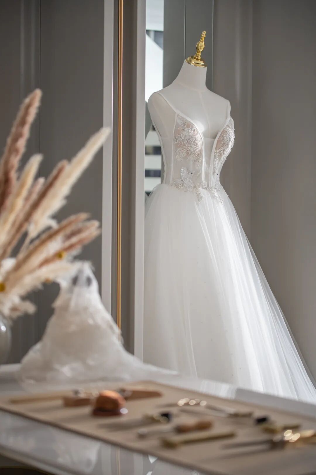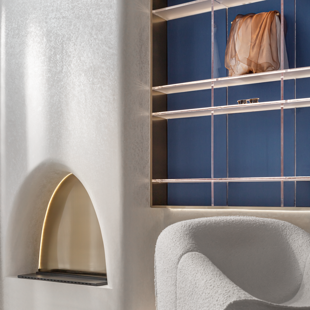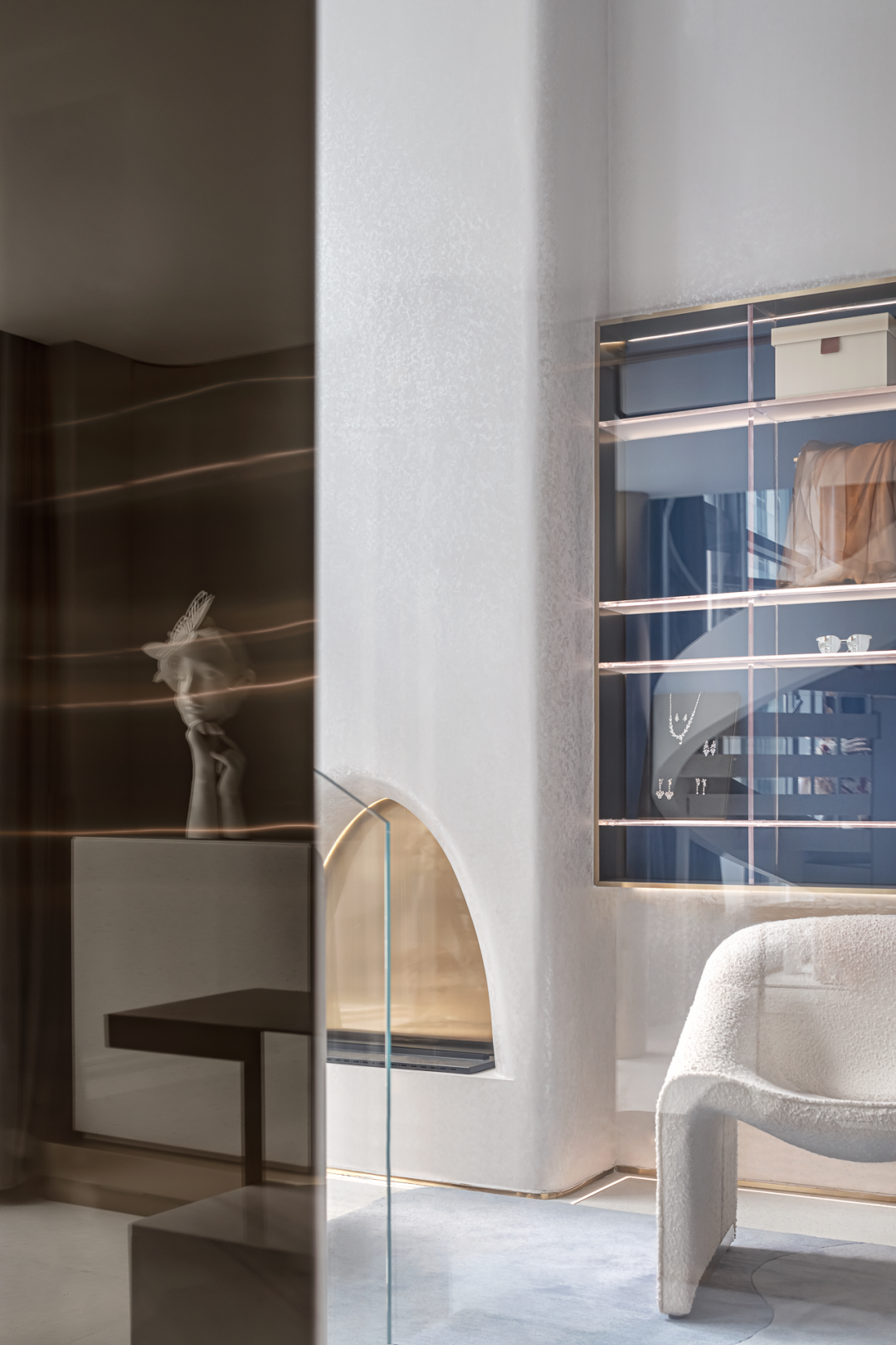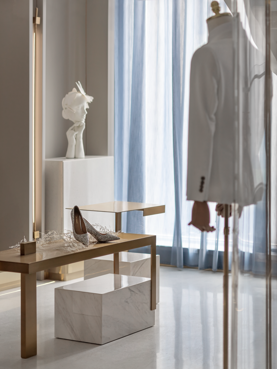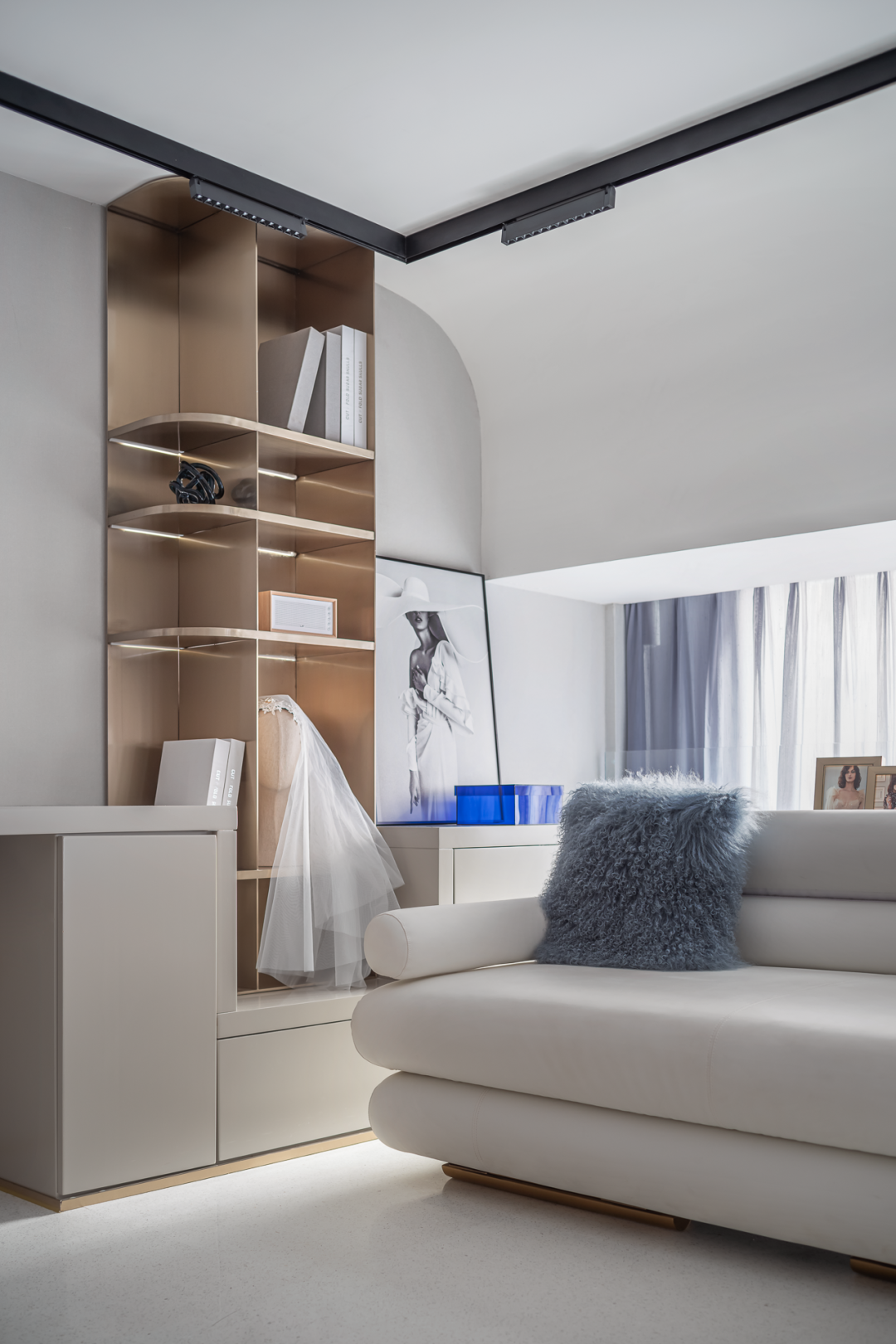 本案为一间私人定制服装店,主营婚纱、礼服、配件设计等,项目位于年轻、时尚、多元化的新型商业环境——沈阳大悦城。针对公寓式户型带来的多样可能性,打造年轻活力的新潮经济和经营理念。