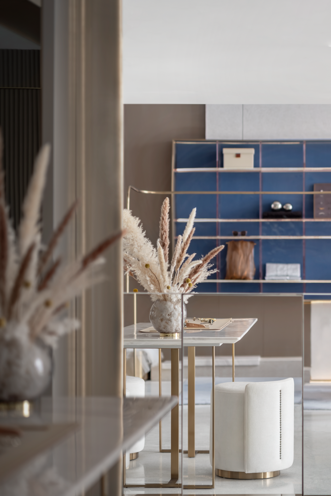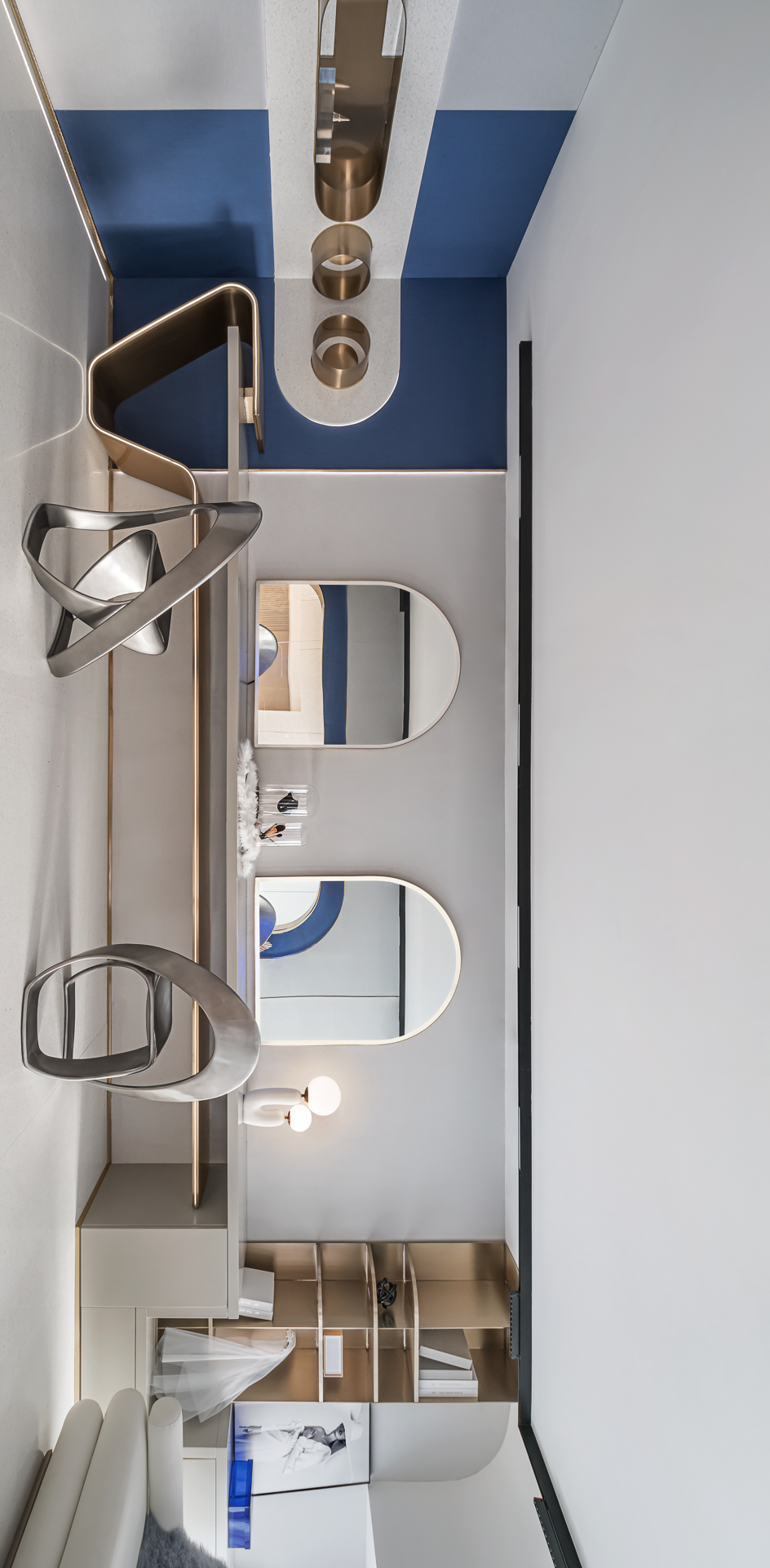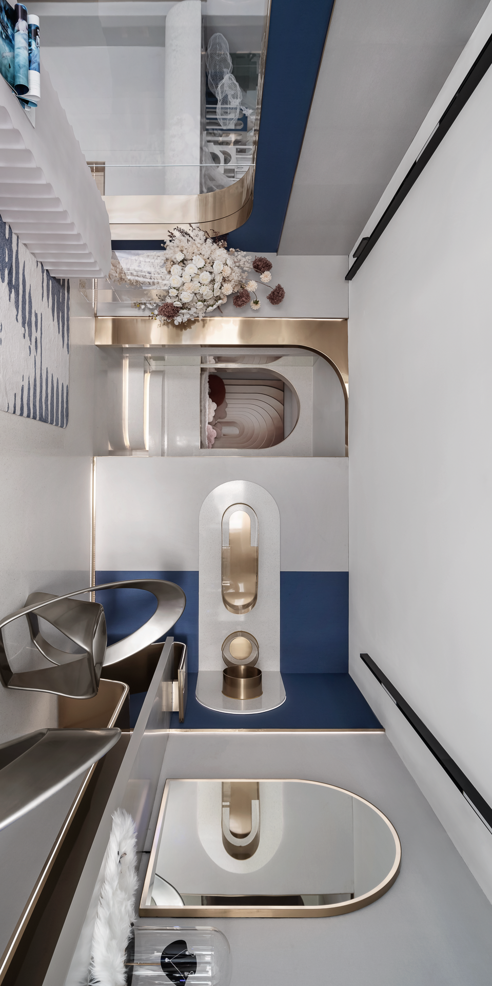 折锦饰物与花朵的浪漫柔和,若有若无地诠释着空间主题;现代时尚的金属材质,用线条、弧度、体块、镜面等元素,提升趣味性与互动体验。