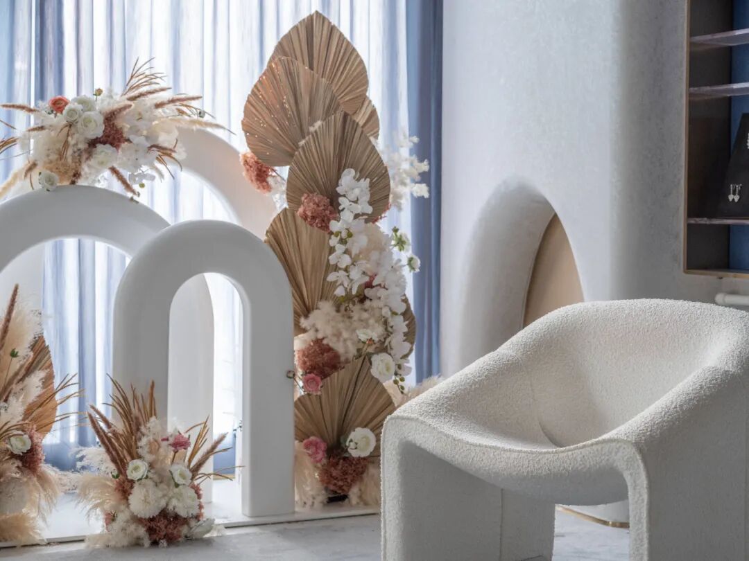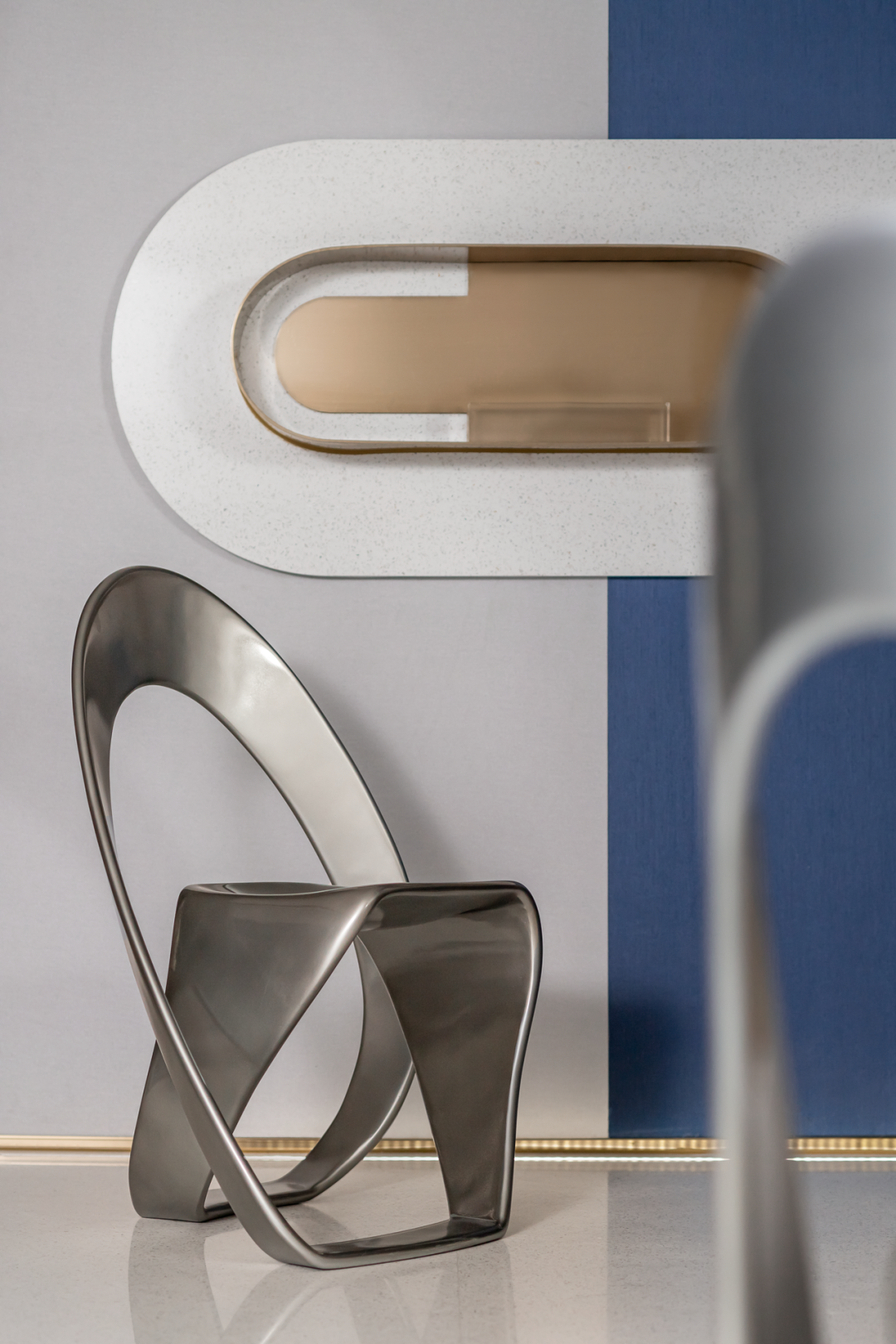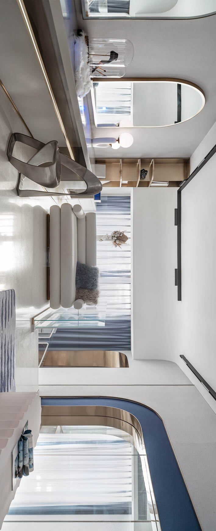 折锦饰物与花朵的浪漫柔和,若有若无地诠释着空间主题;现代时尚的金属材质,用线条、弧度、体块、镜面等元素,提升趣味性与互动体验。